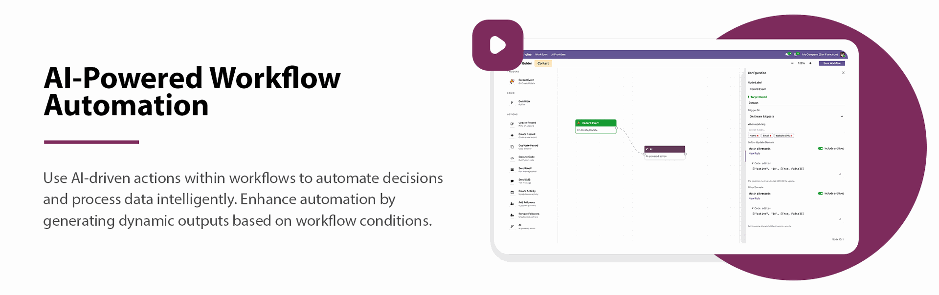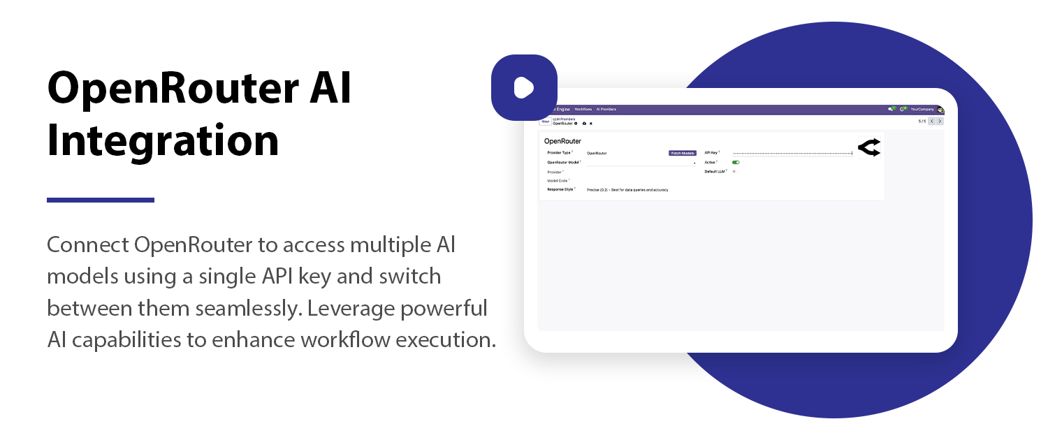 Use AI inside workflows for intelligent automation and dynamically process business data.