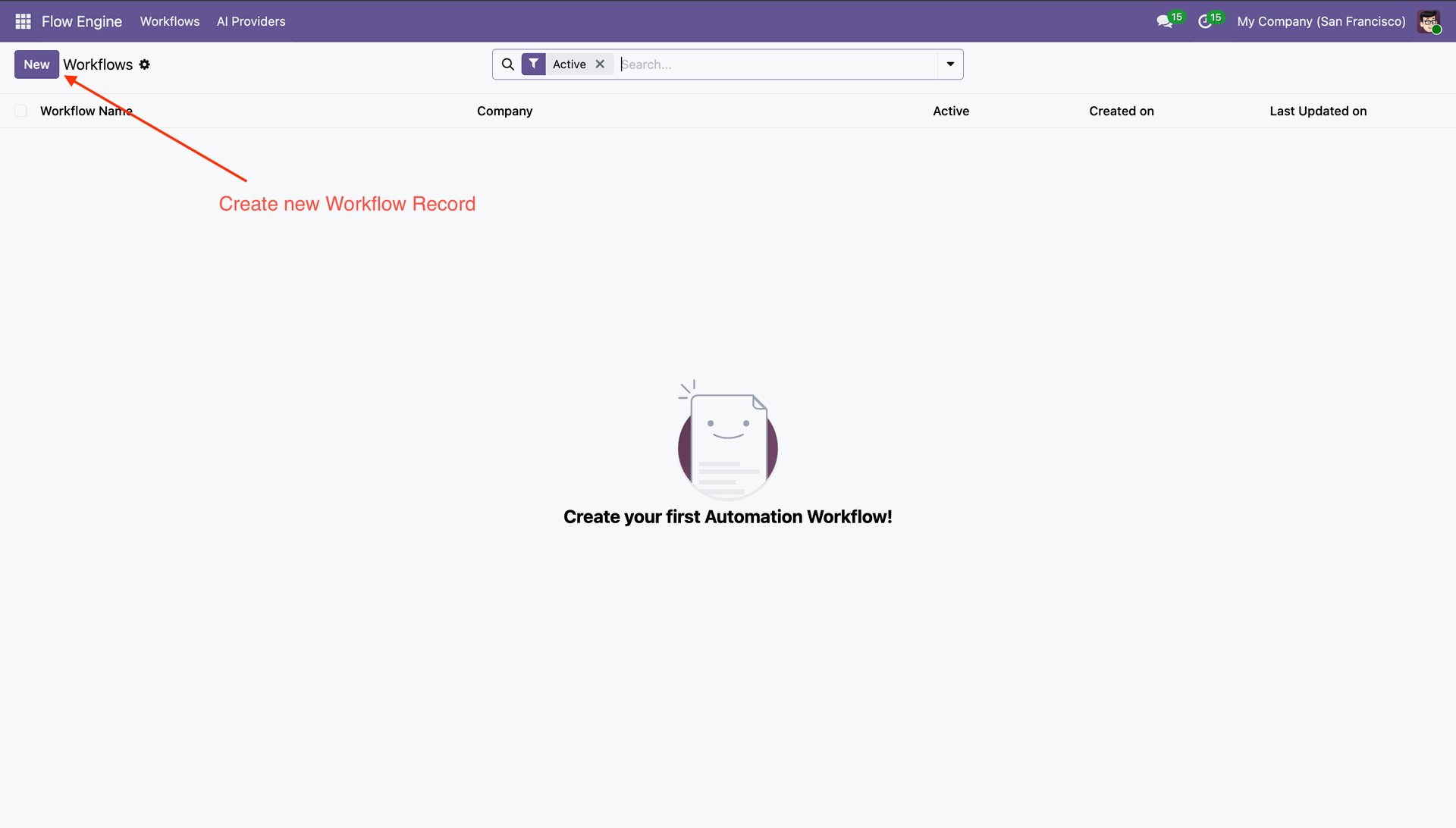 Click 'New' to create new workflow record.