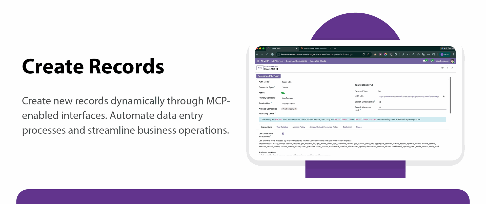 Create new records directly through MCP-enabled secure access. Automate data entry and streamline business processes.