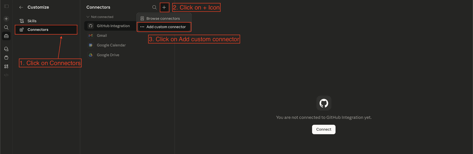 Go to the connectors, click custom connector, add all details, and click 'Add'.