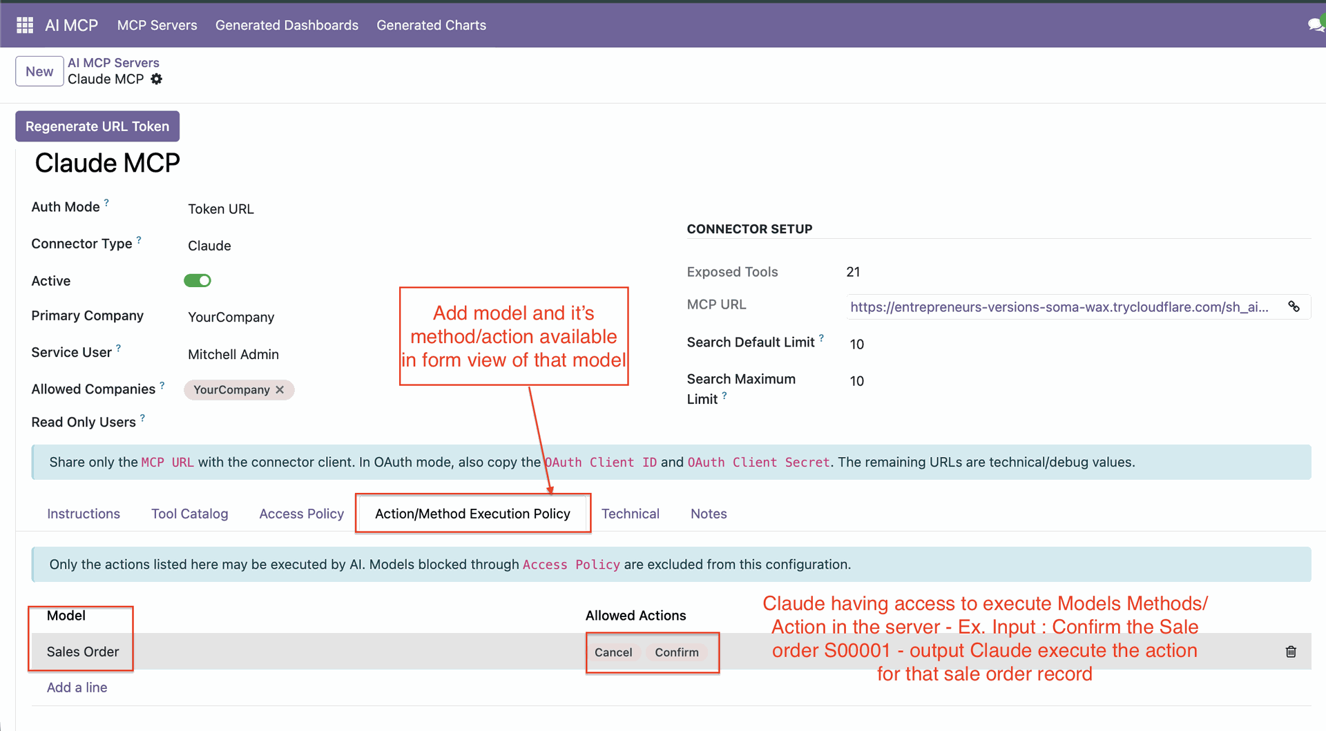 You can control which actions are permitted on a model, such as confirm, cancel etc ensuring users or AI can only perform specific operations as needed.
