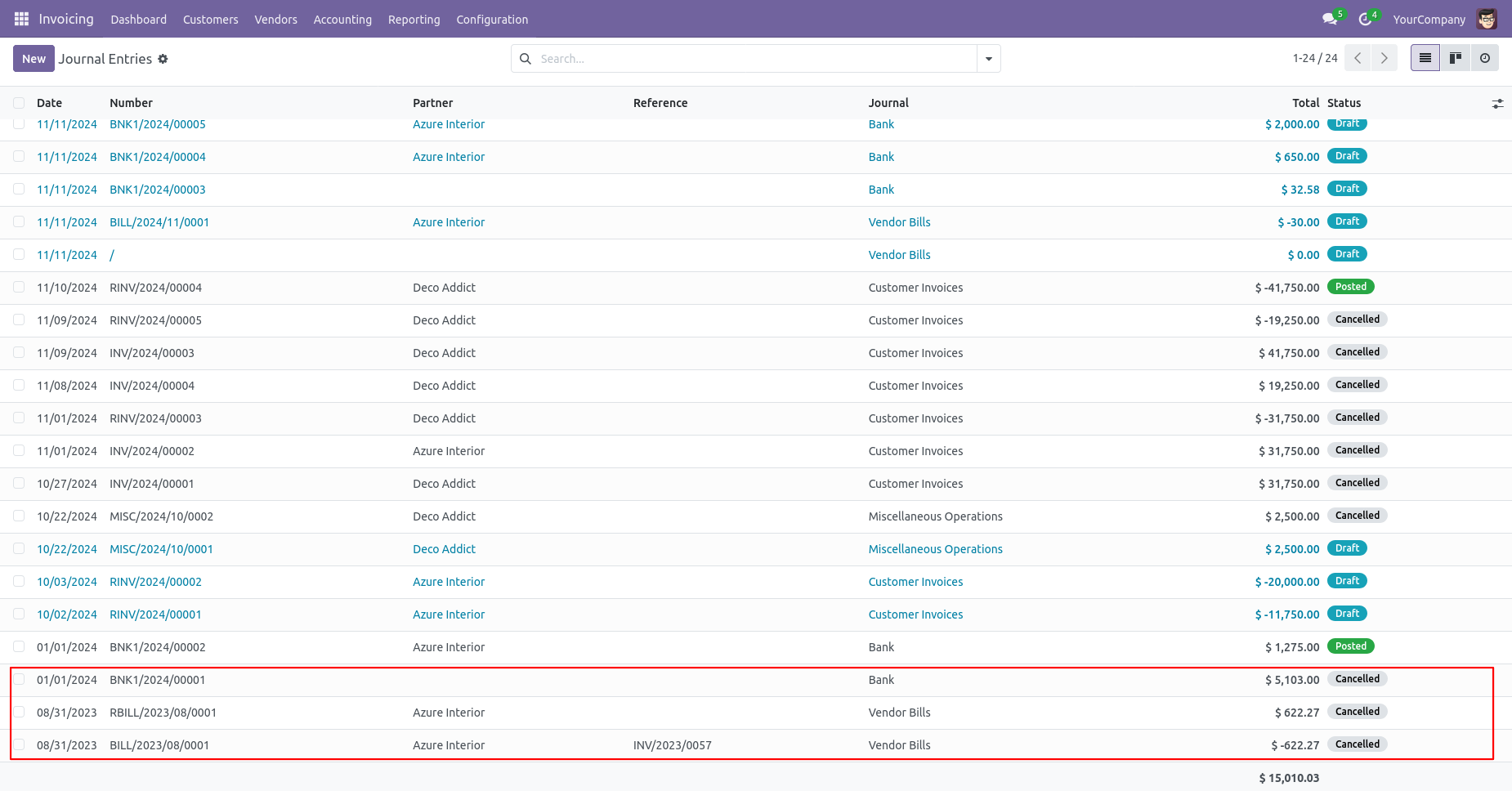 Here, you can see that the status of all the journal entries has been changed to 'Draft'.