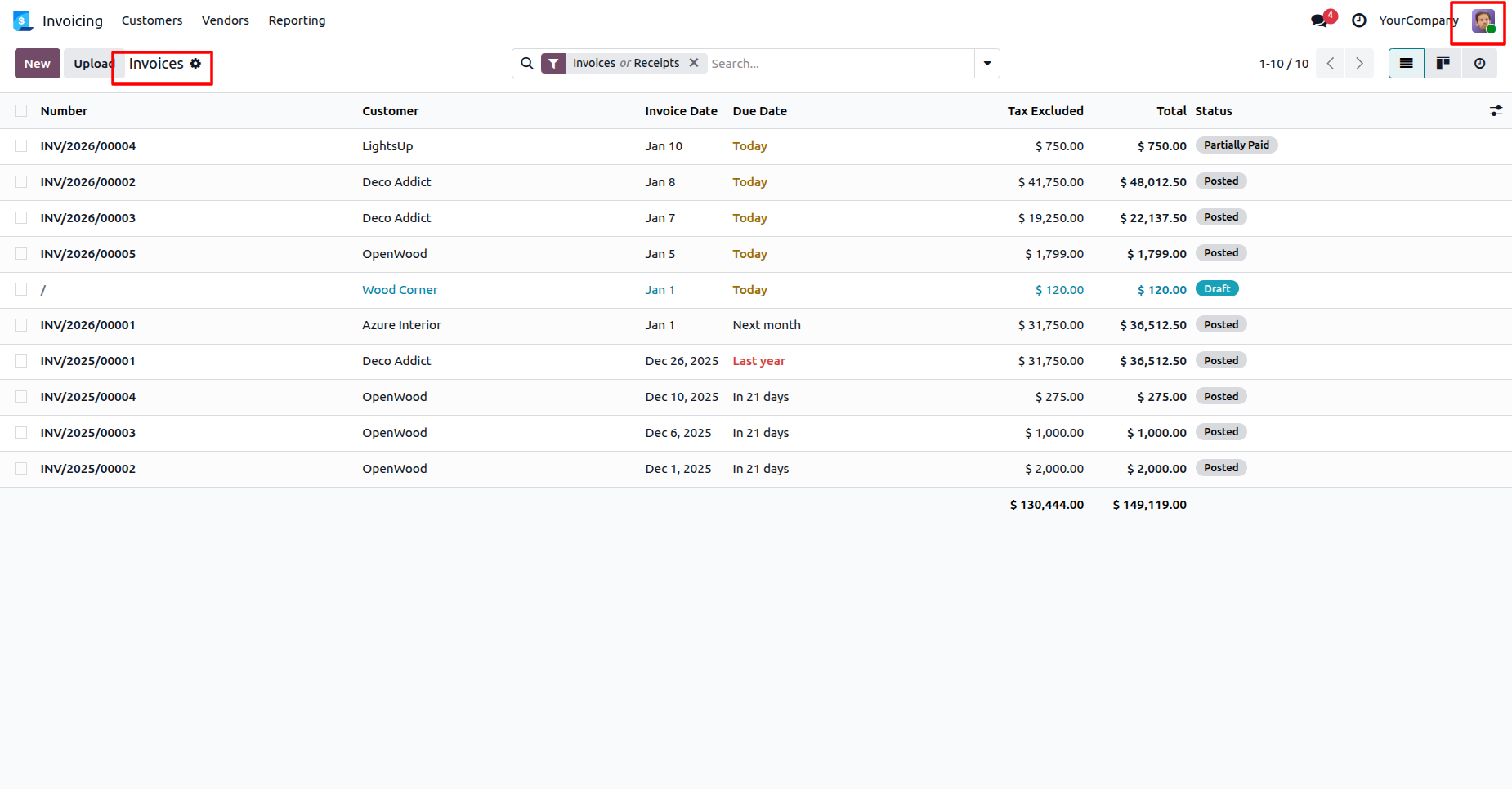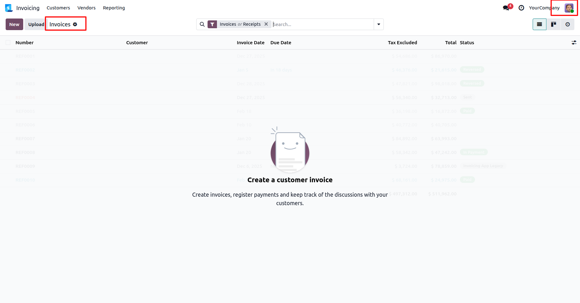 The user can view and create invoices because they have access to customer invoices.