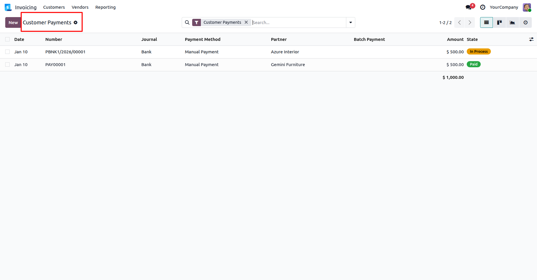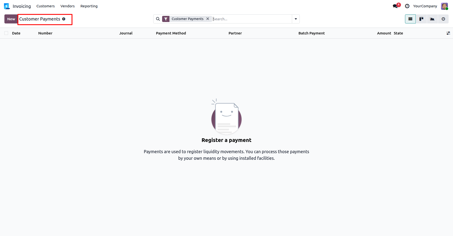 Here, no Customer payment records are displayed because we have not granted this user access to any journals.