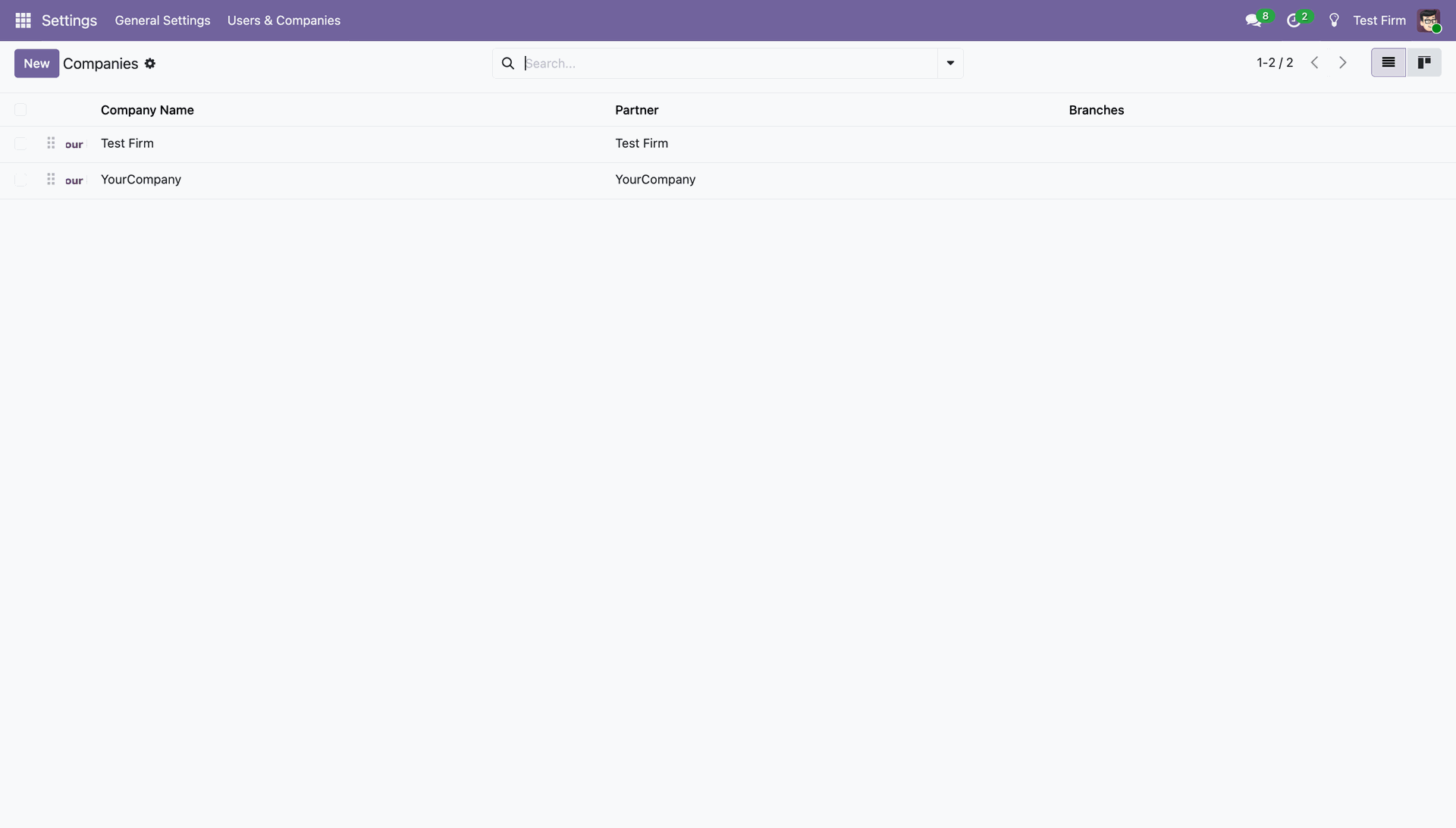 Companies list view.