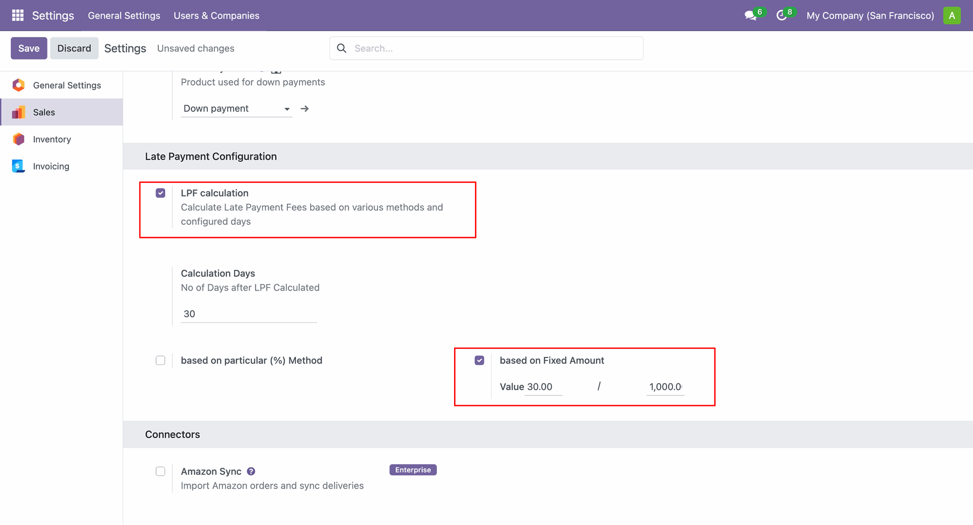 Go to sales configurations and enable the 'LPF Calculation' boolean and add tick boolean & Value "Based on particular (%) Method".