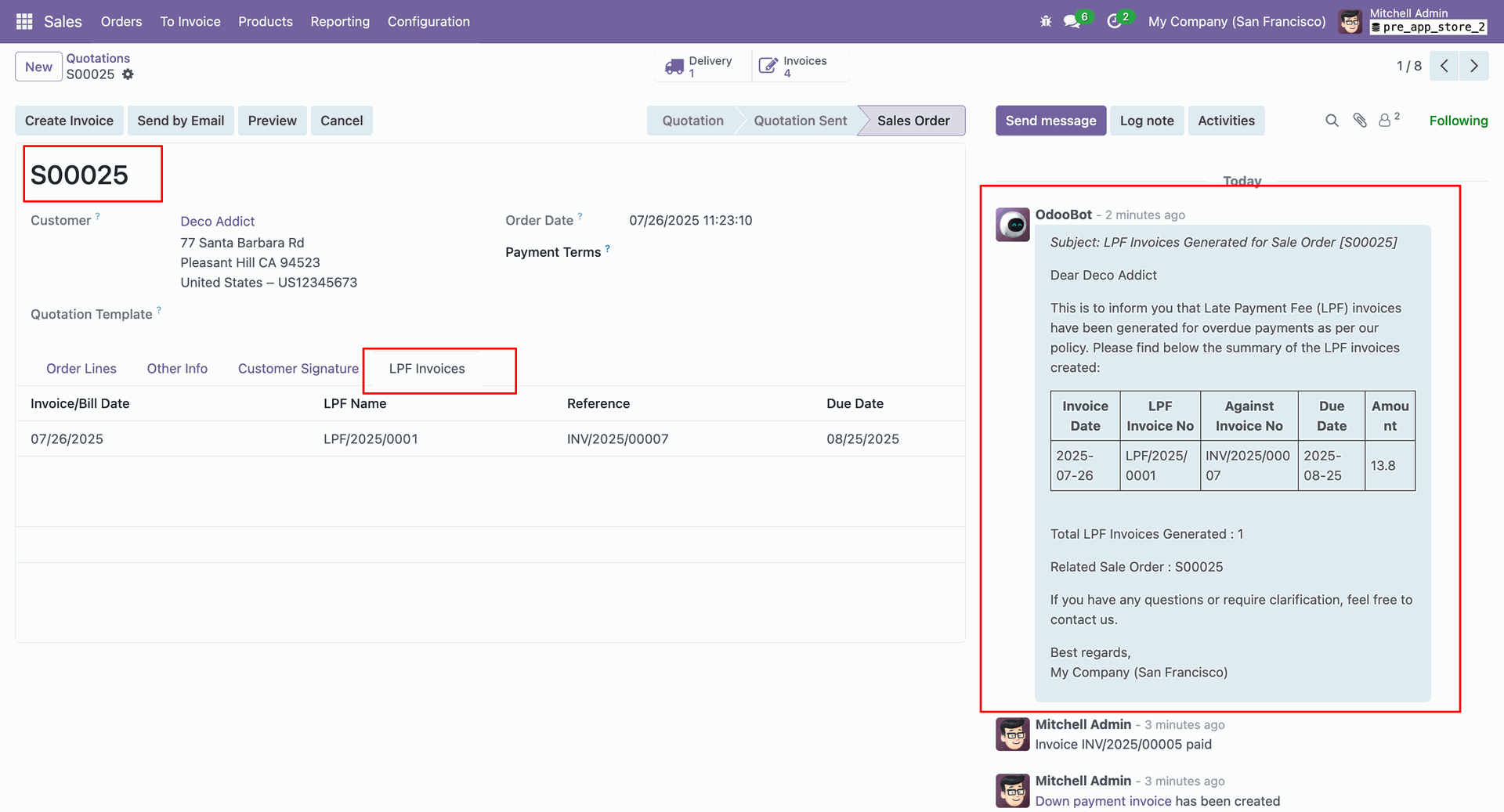 In the invoices generated from the Sales Order, you can view the due date calculation and payment details based on the due date configured in the LPF calculation settings.