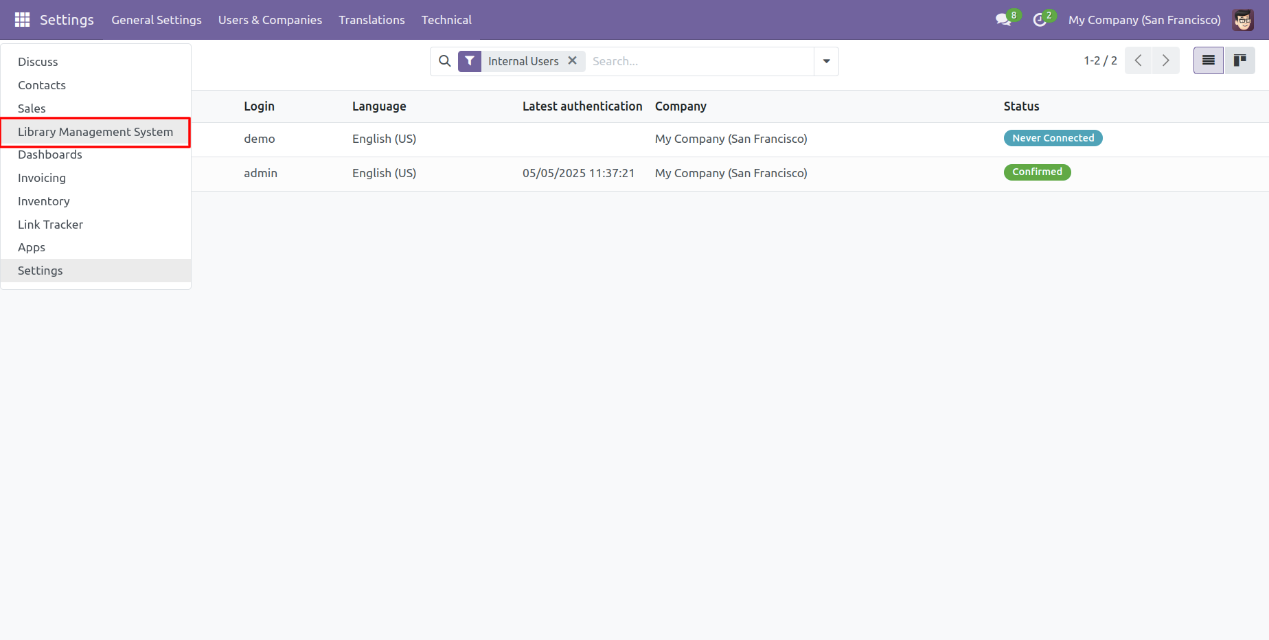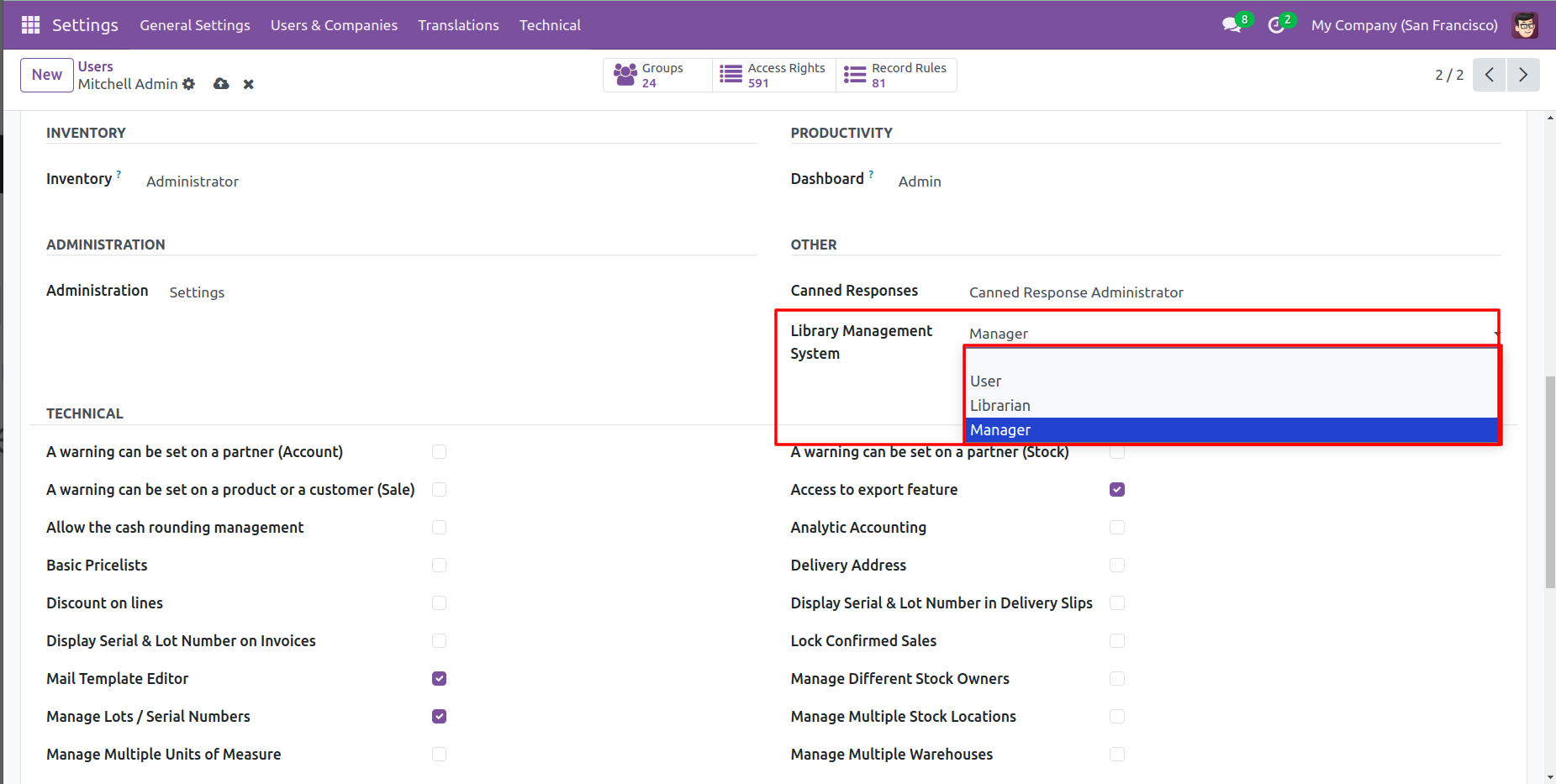 Go to User Settings and assign the role Library Management system: Manager.