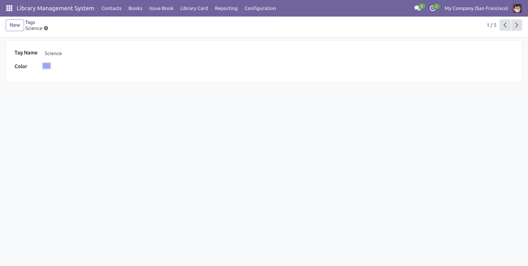 Form view of the 'Books'.