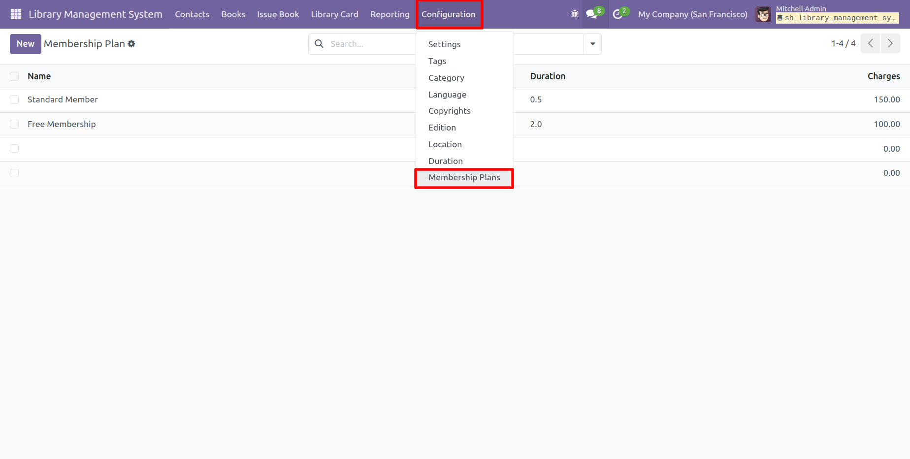 'Membership Plans' menu and tree view.