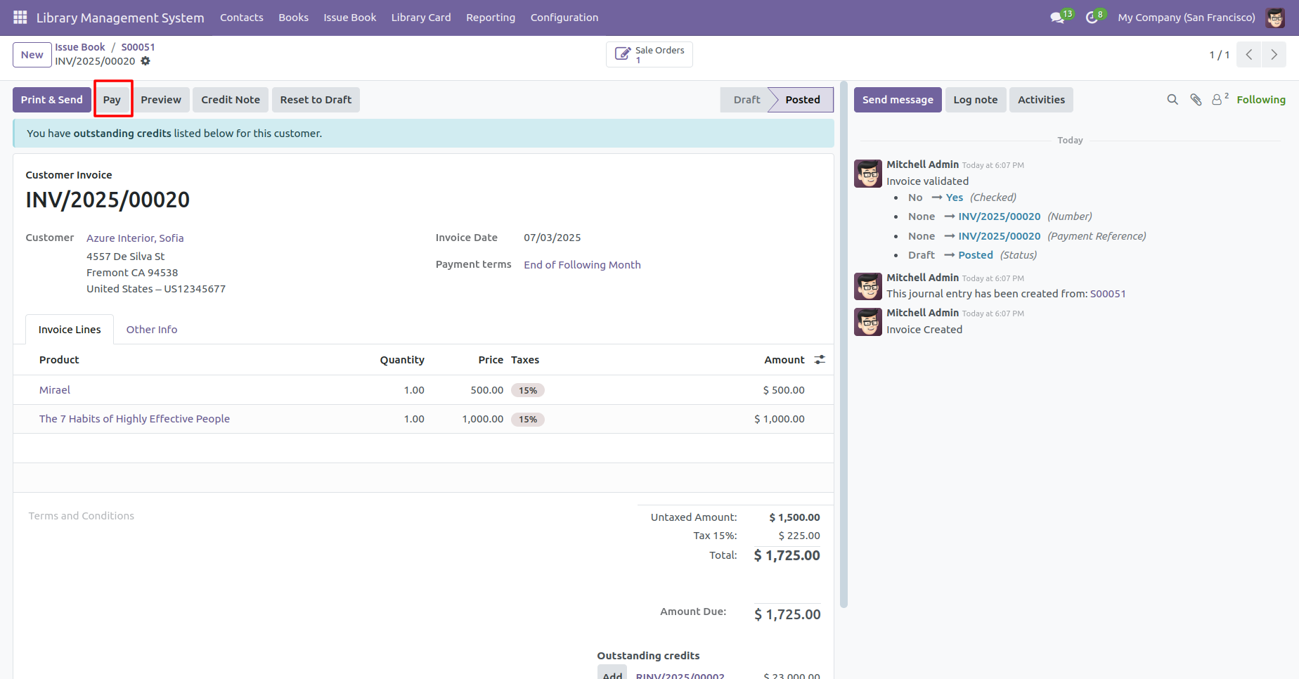 Here you can see the created invoice.