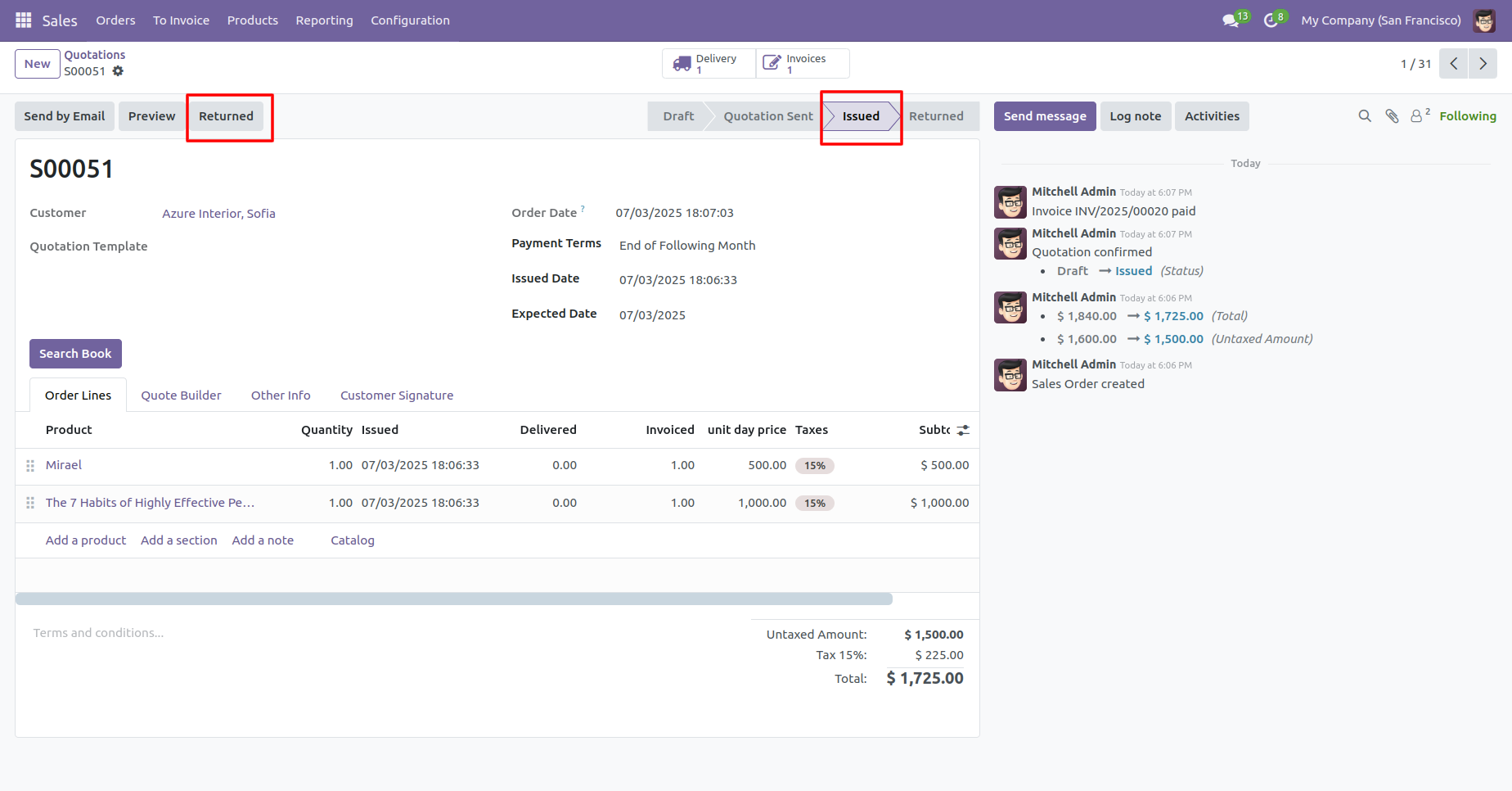 Now you can see the order is in the 'Returned' stage.