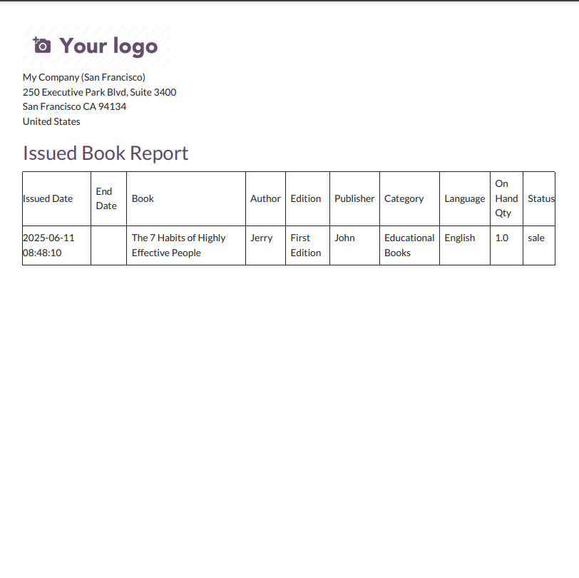 The issued books report looks like below.