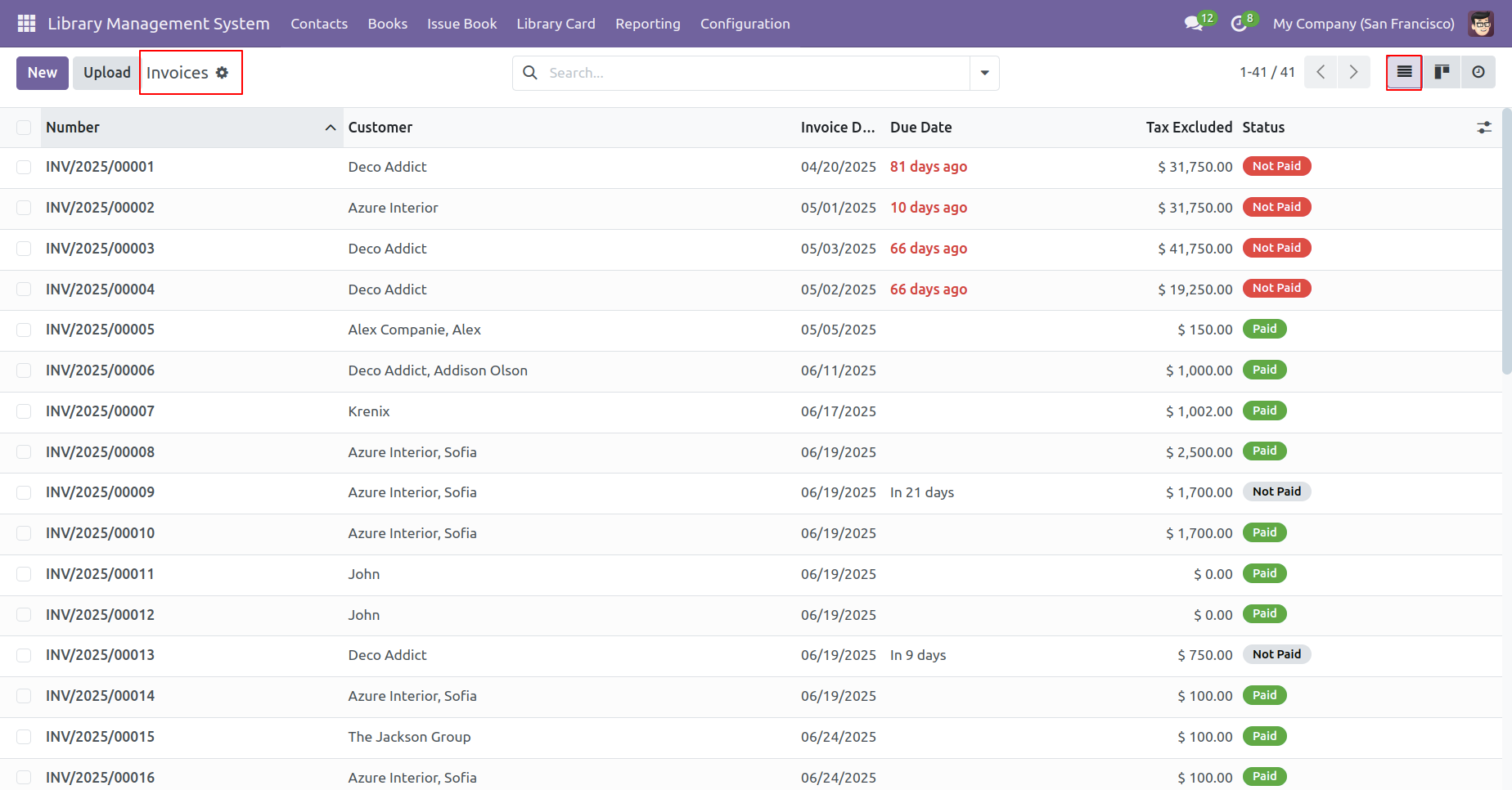Here, you can view the list of membership invoices.