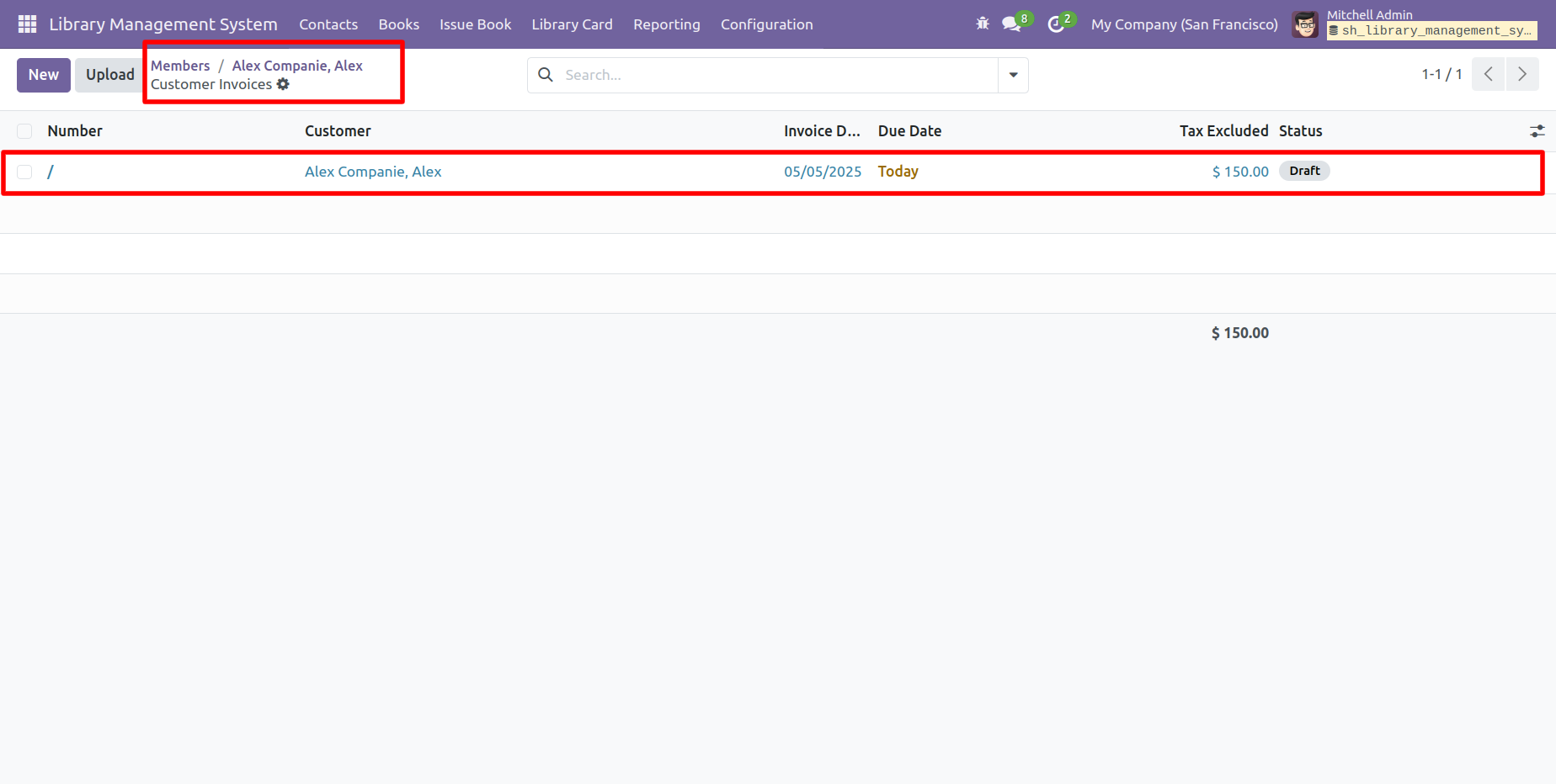 Click on the 'Membership Invoice' smart button to view the related invoices.