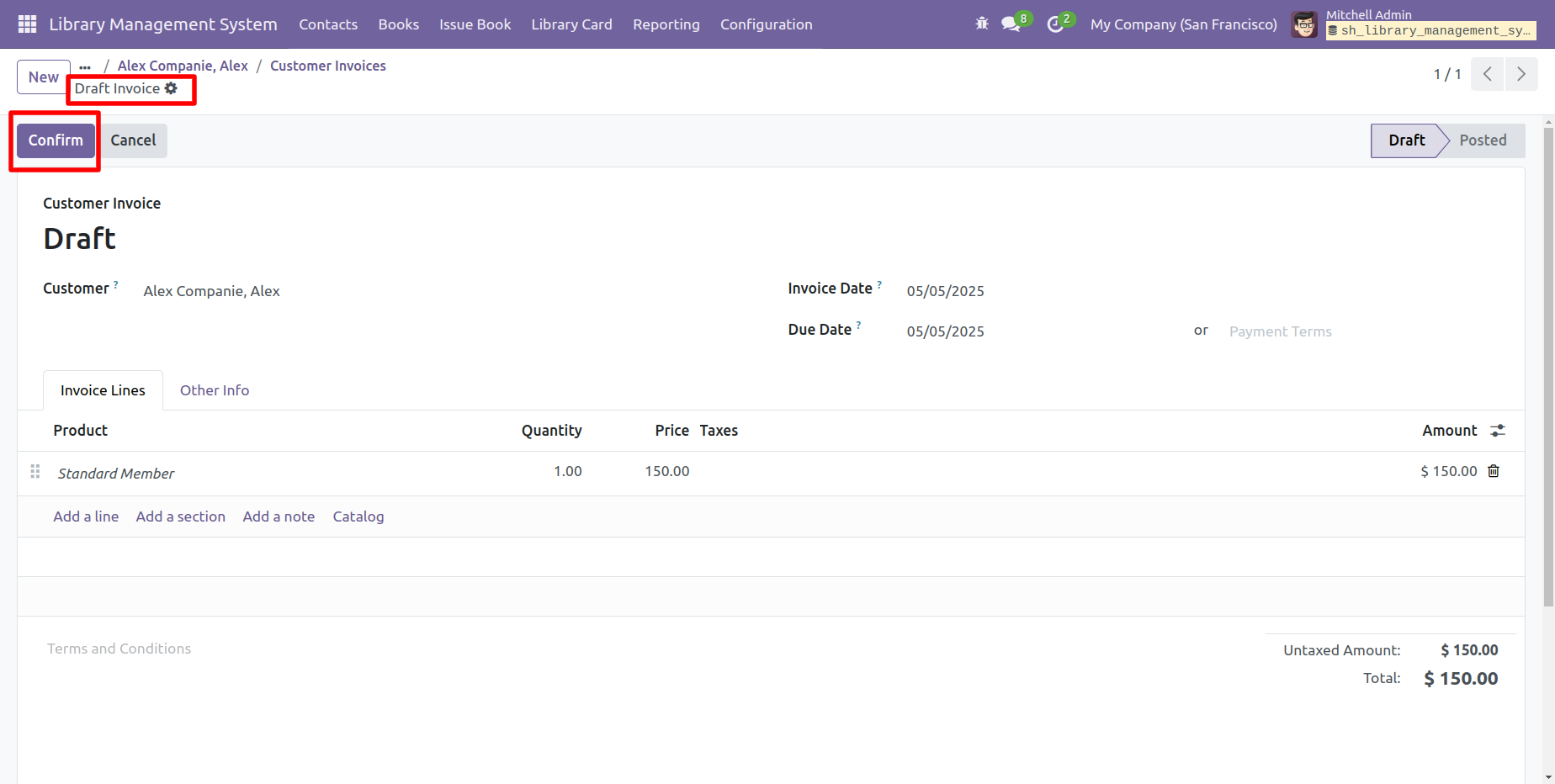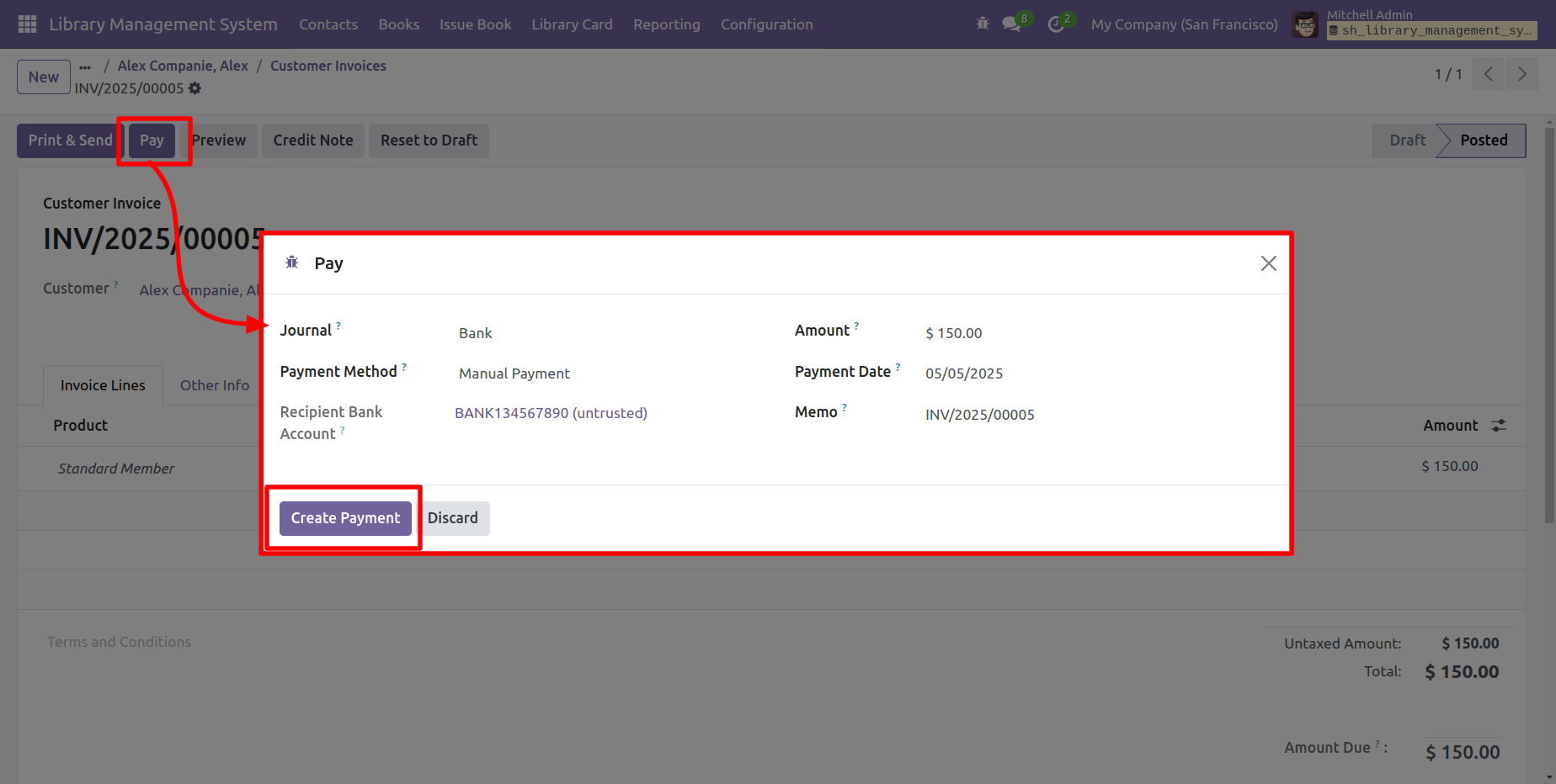 Now you can see the invoice is in the 'Posted' stage.