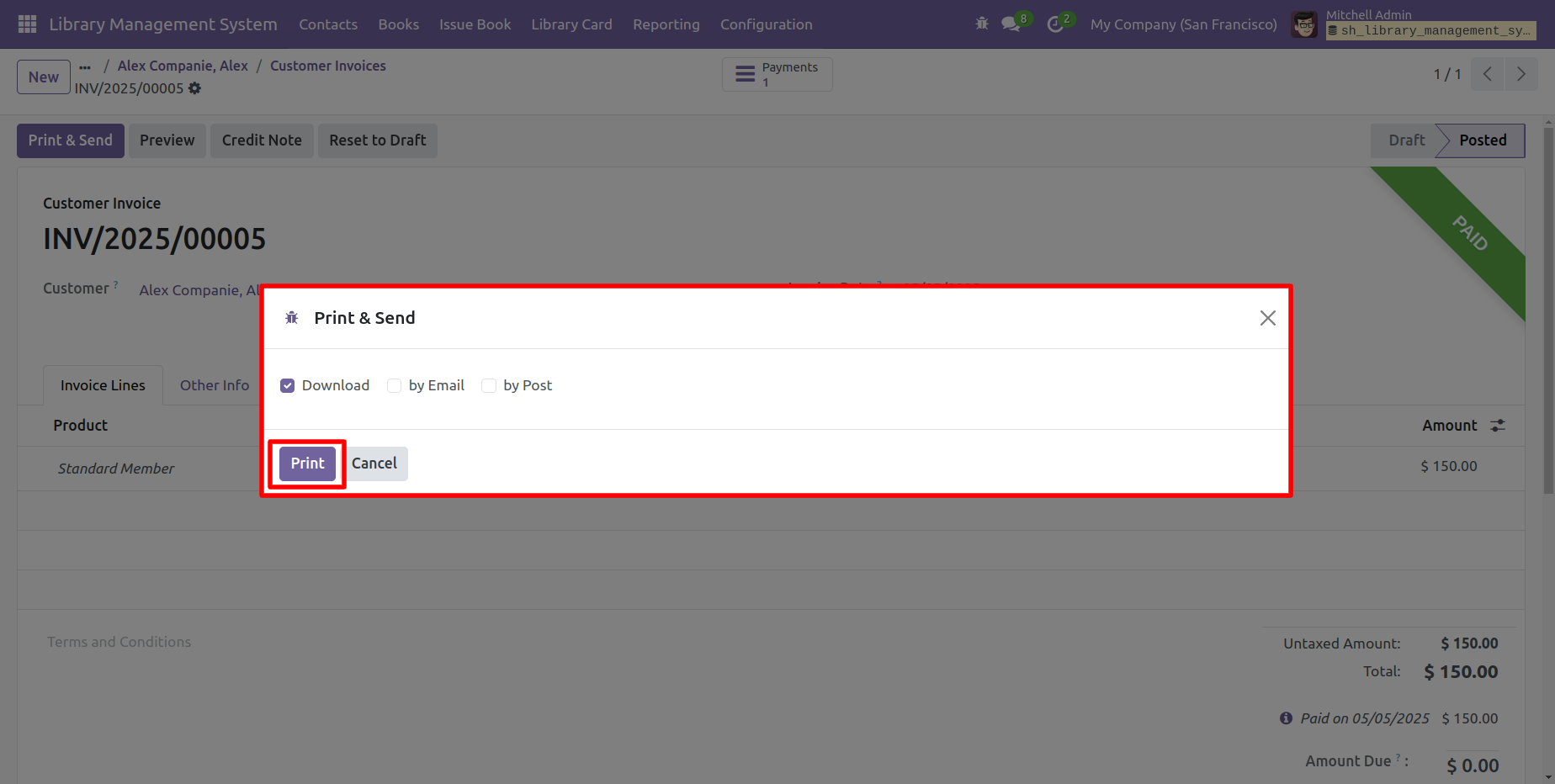 To print the invoice, click on the 'Print & Send' button.