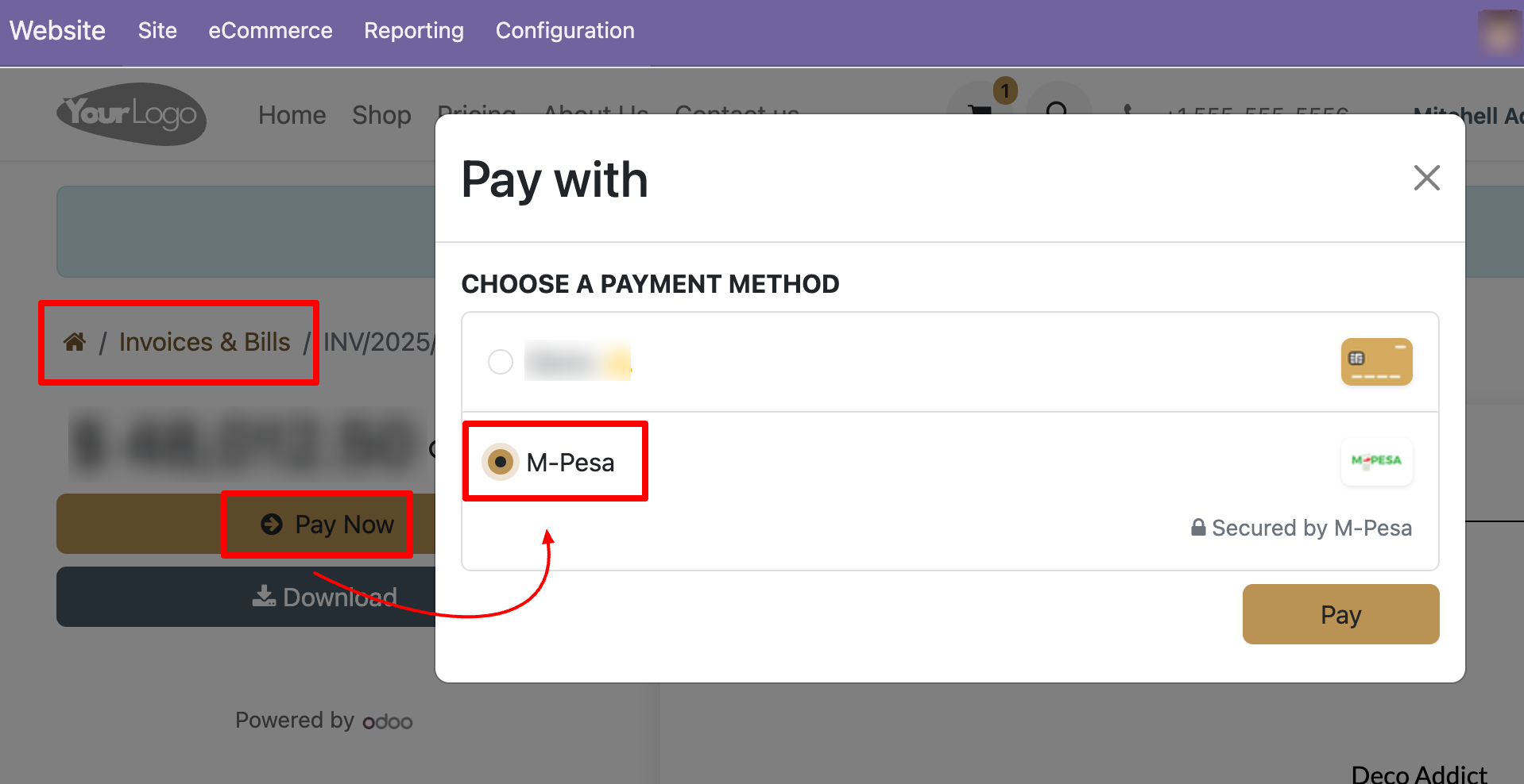 Easily integrate your Odoo system with the M-Pesa payment gateway to enable fast and secure transactions.