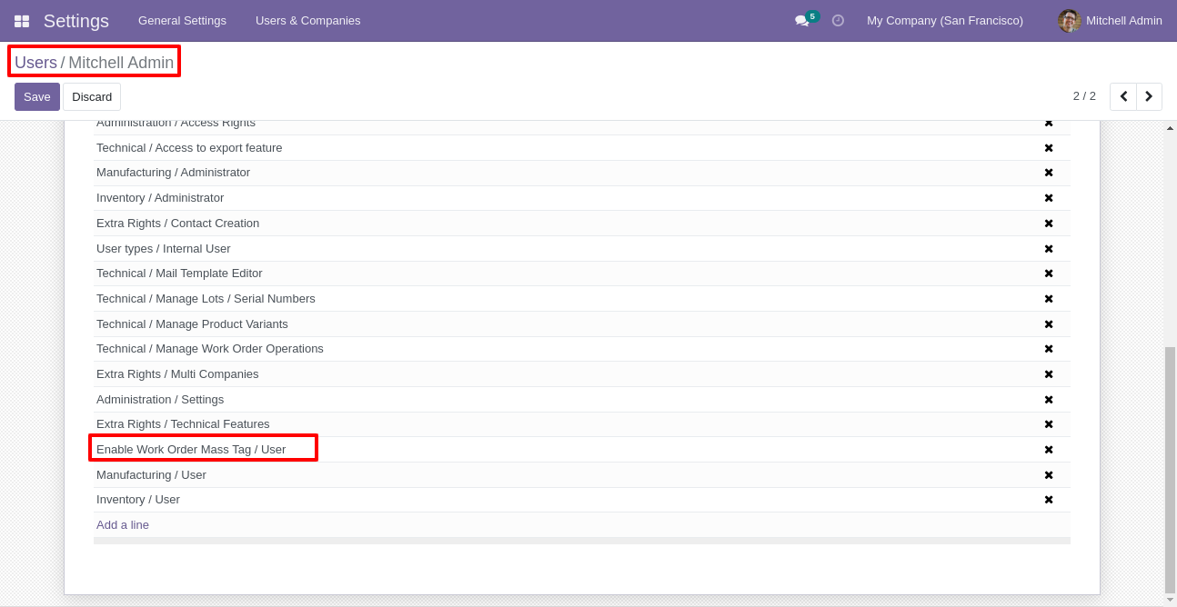Access rights for the workorder mass tags.