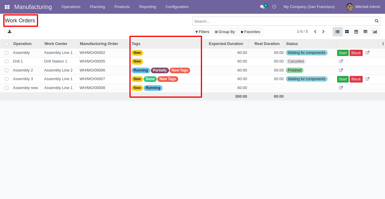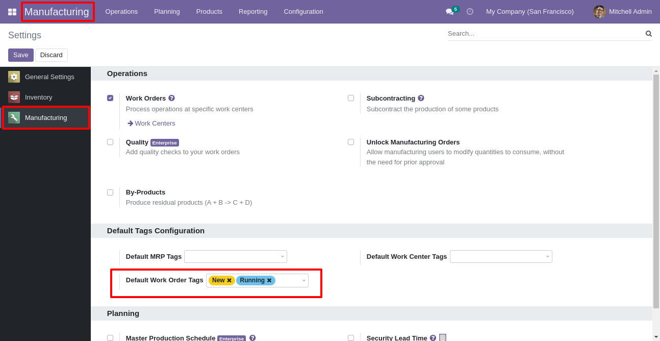 - You can set default tags for workcenter & workorder. New