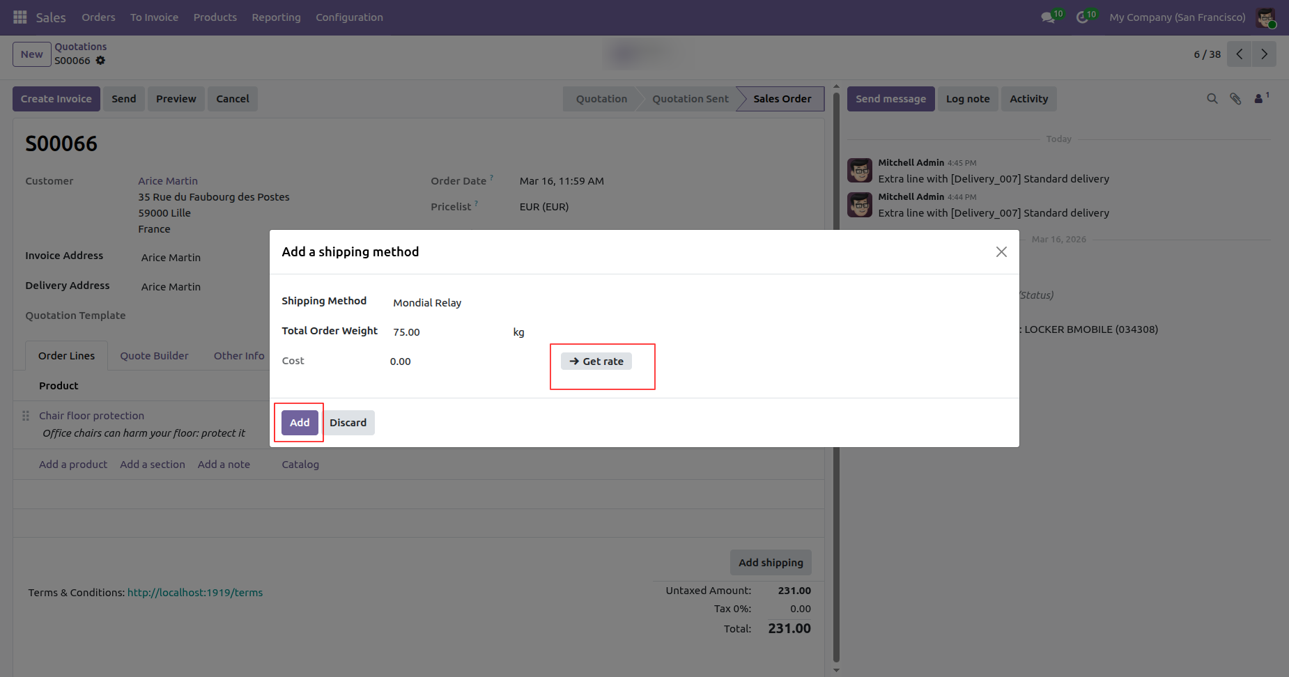Automatic rate fetching to provide live Mondial Relay shipping prices during Quotation creation.