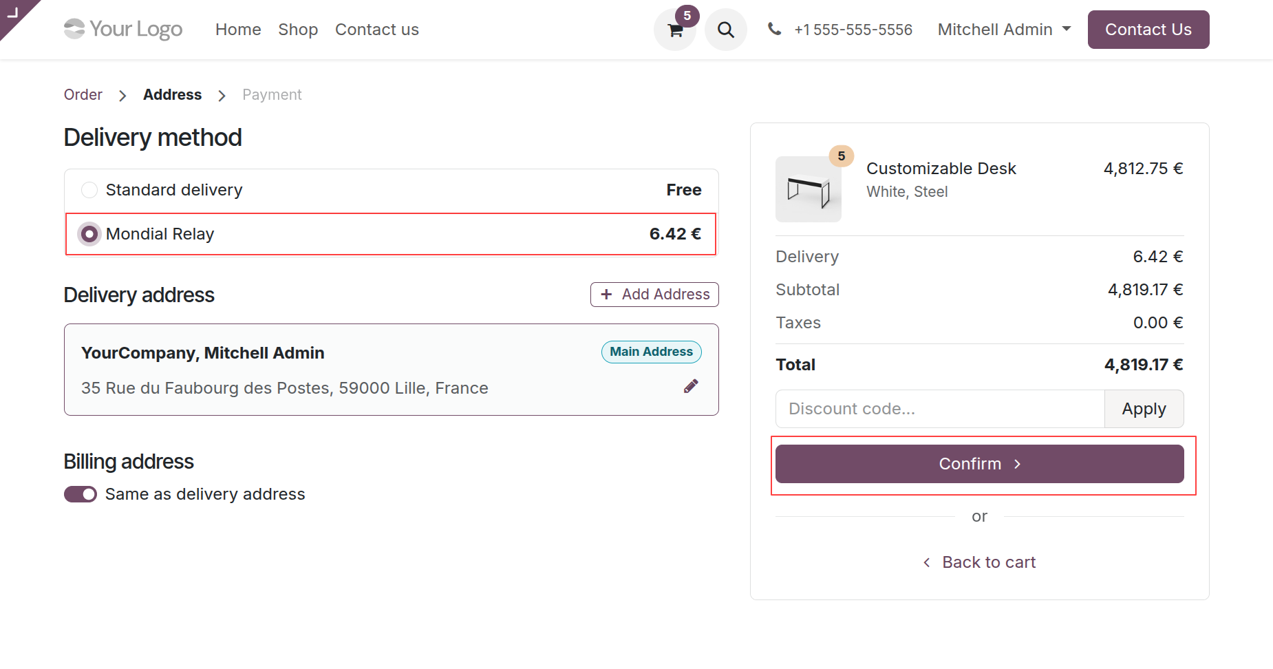 Select Mondial Relay method.