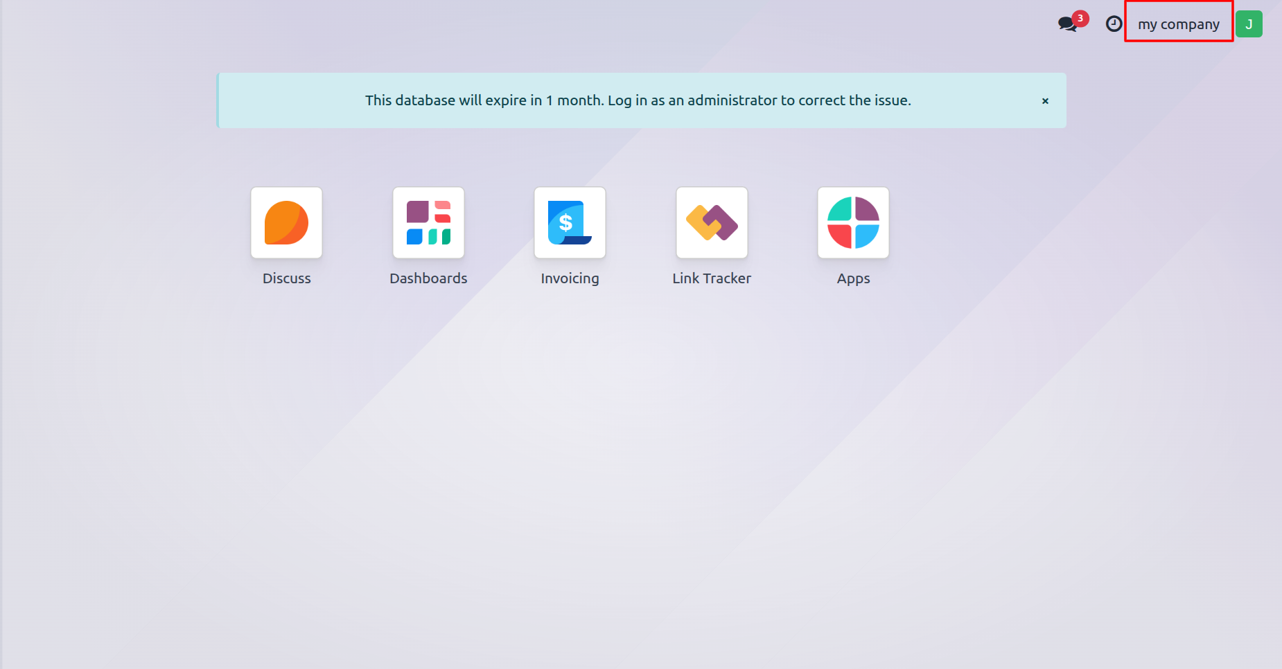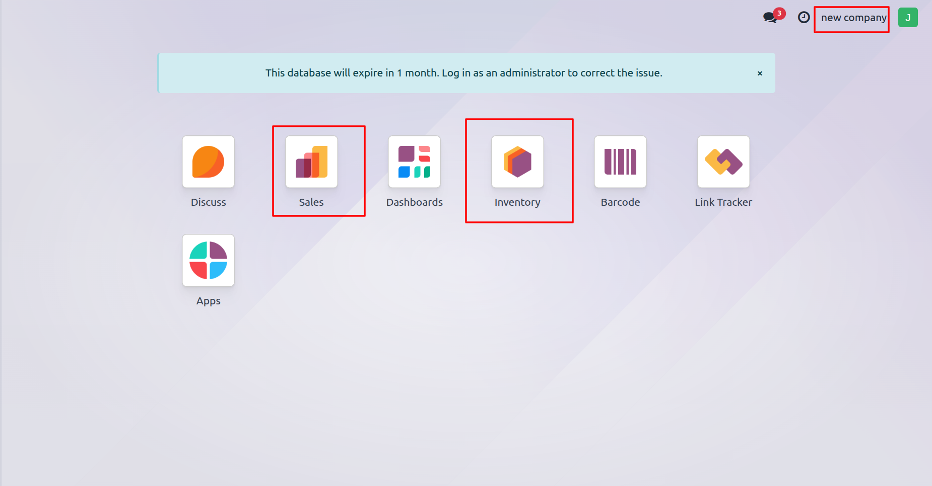 Log in as the Johnson user. Here, you can see that Johnson can access Sales and Invoicing in Your Company, as configured.