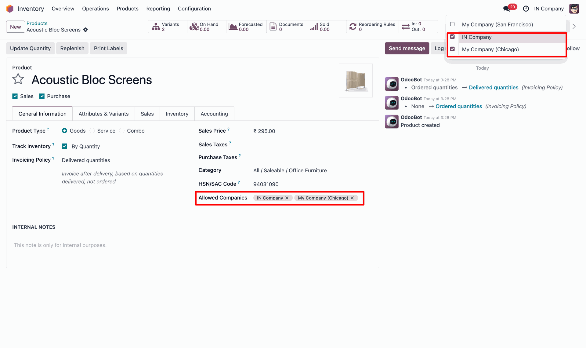 Product linked to multiple companies. Users can easily manage products across multiple companies.