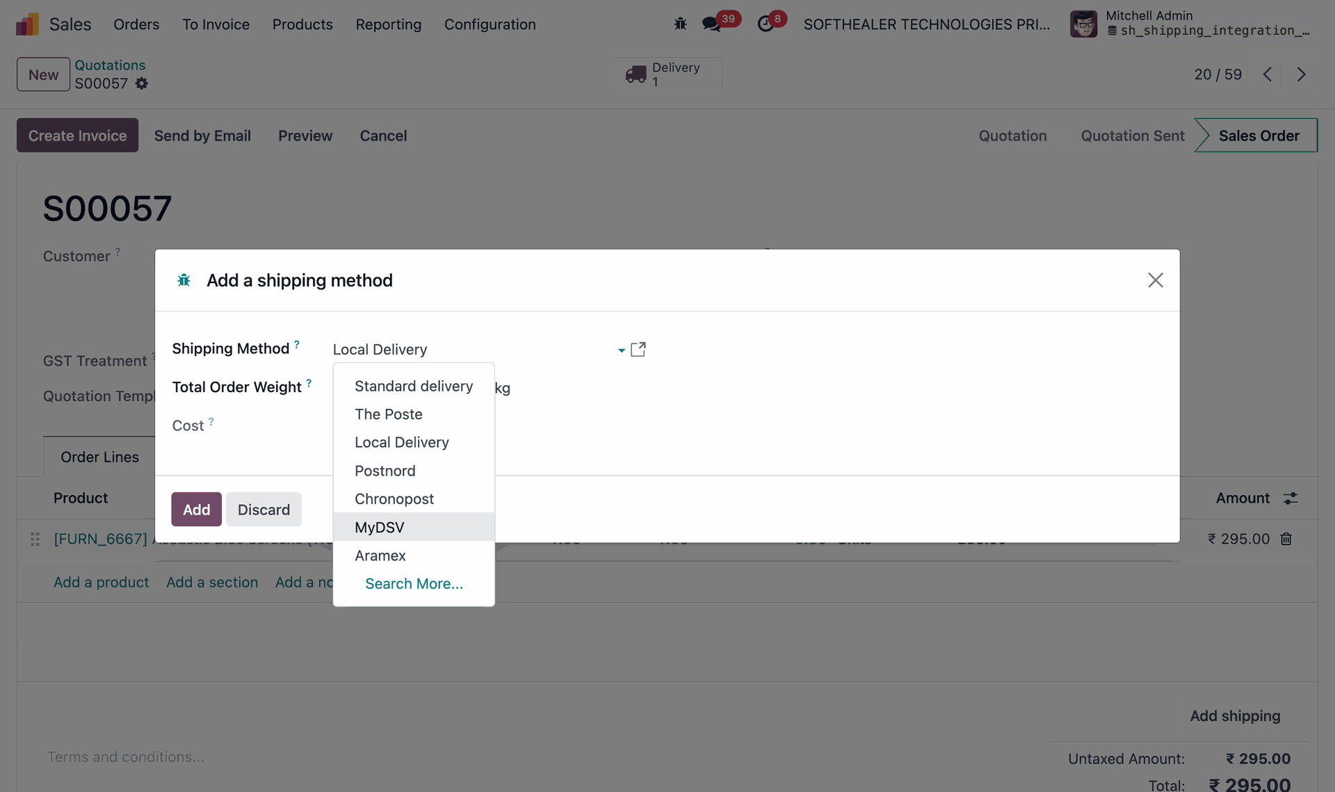 Select MyDSV as the shipping method while creating a quotation to enable real-time rate fetching and automated shipment processing through DSV.