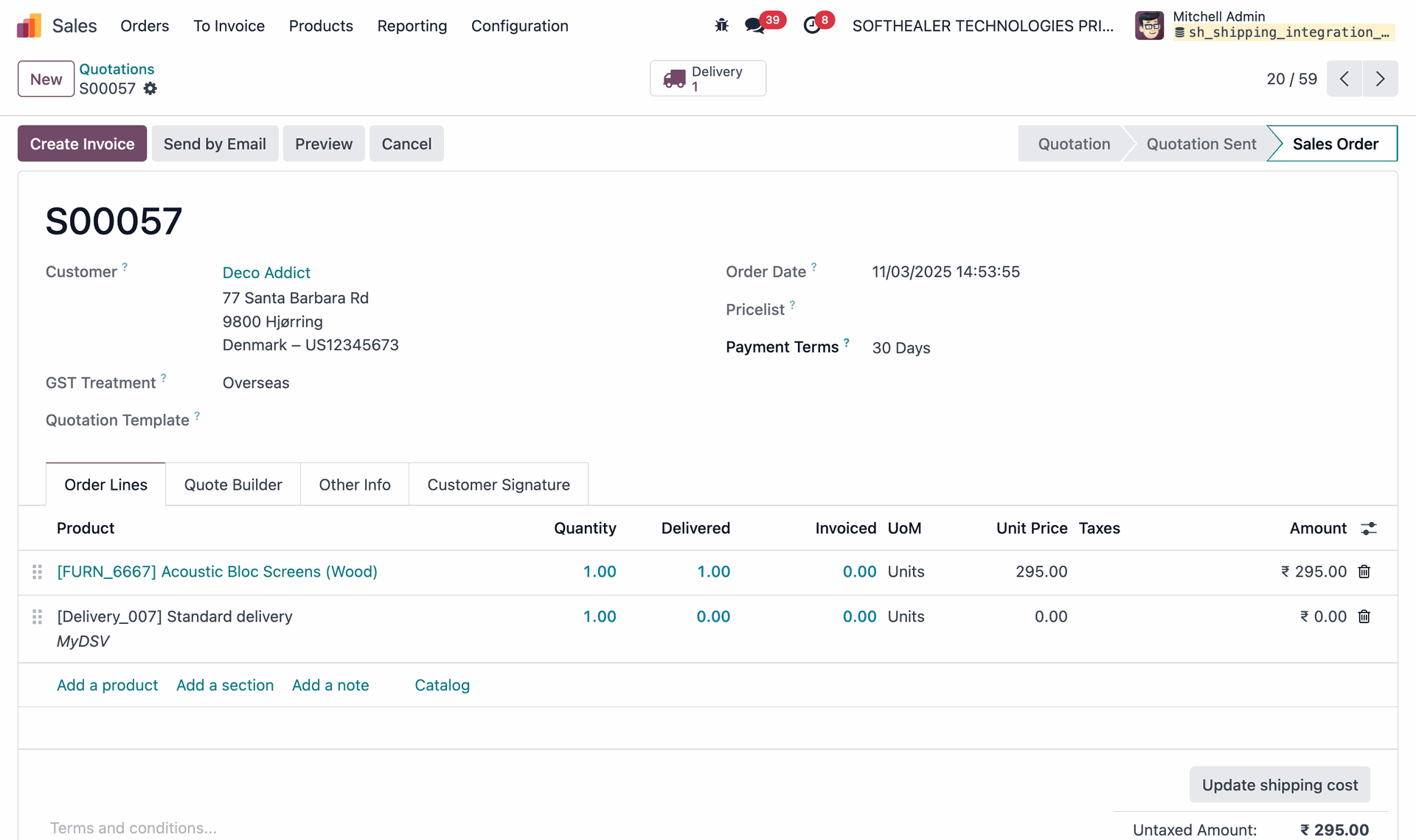 Quotation with the MyDSV shipping method added.