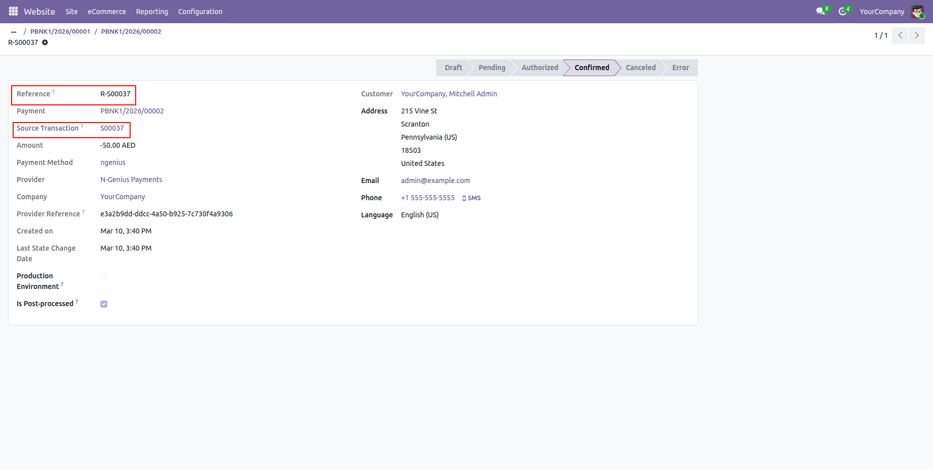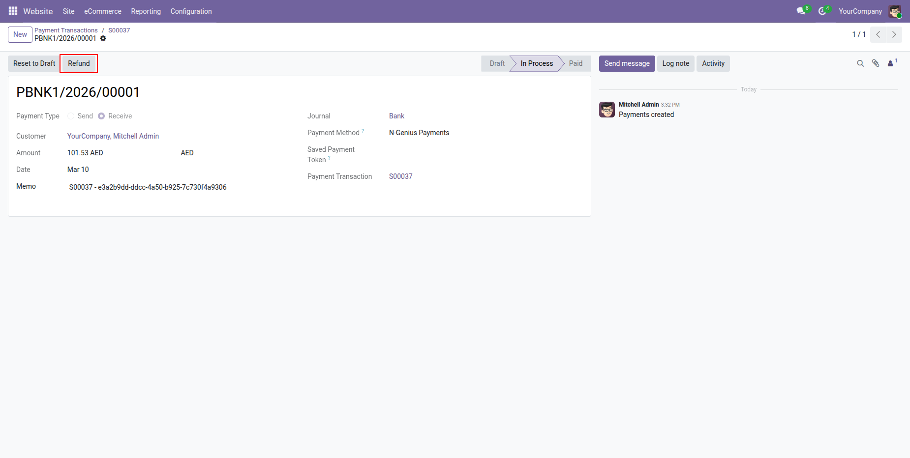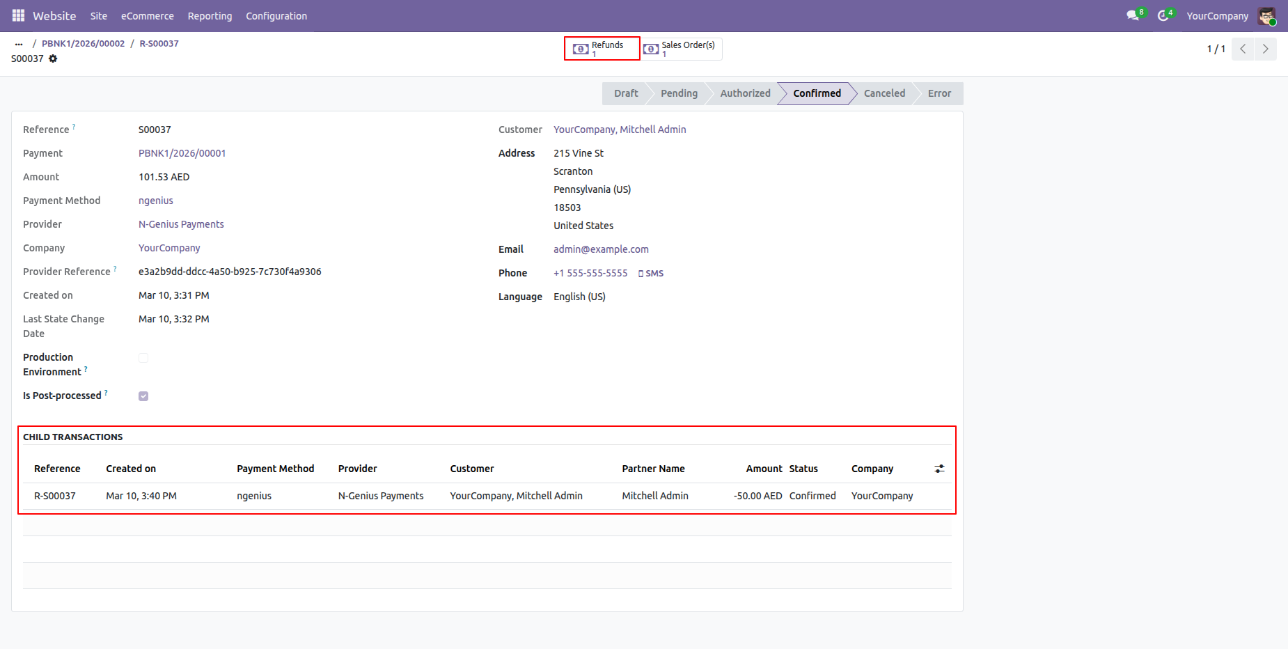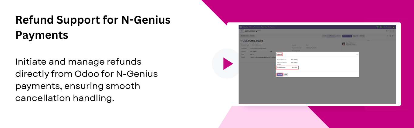 Process refunds directly from Odoo for any order paid through N-Genius. Ensuring smooth handling of cancellations.