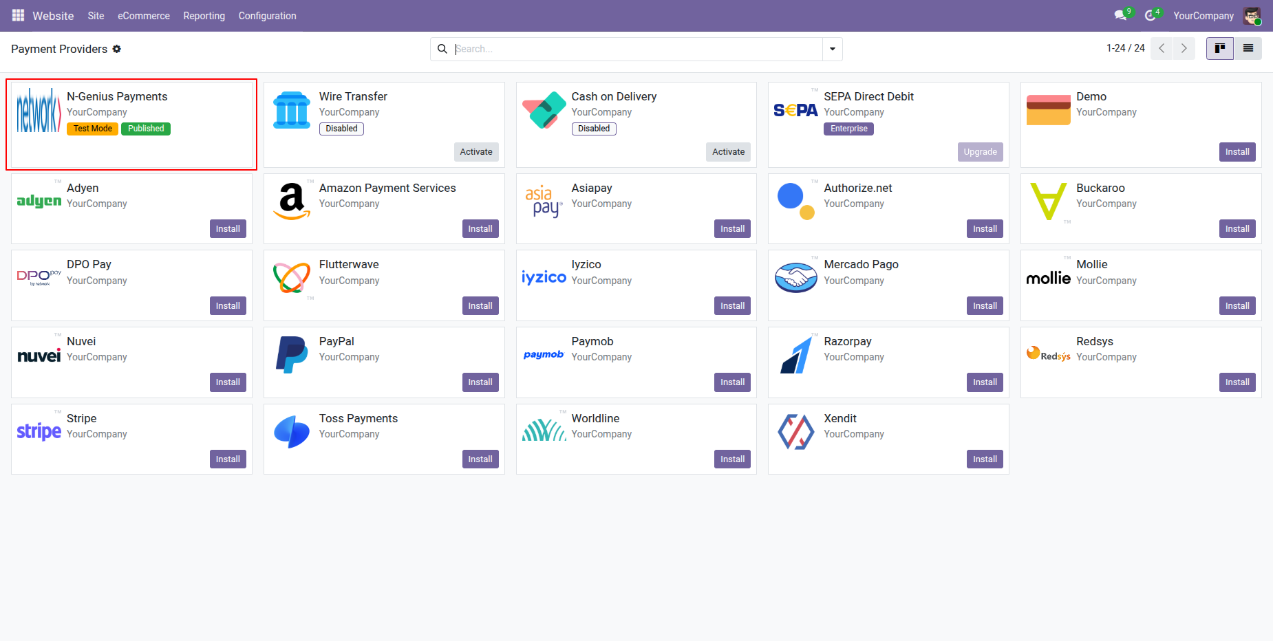 Go to Website -> Configuration -> Payment Providers to access N-Genius settings.