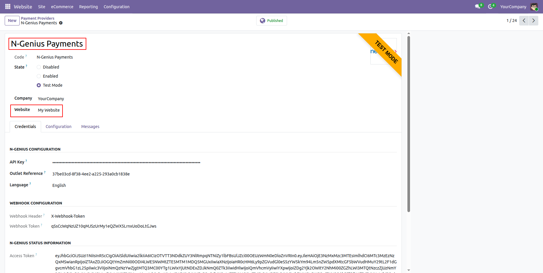 Enable N-Genius Payments across multiple Odoo websites.