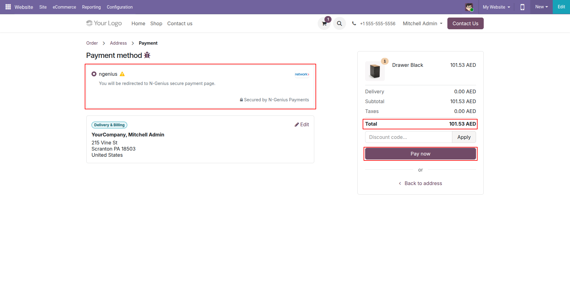 Select "N-Genius" in checkout and click "Pay".