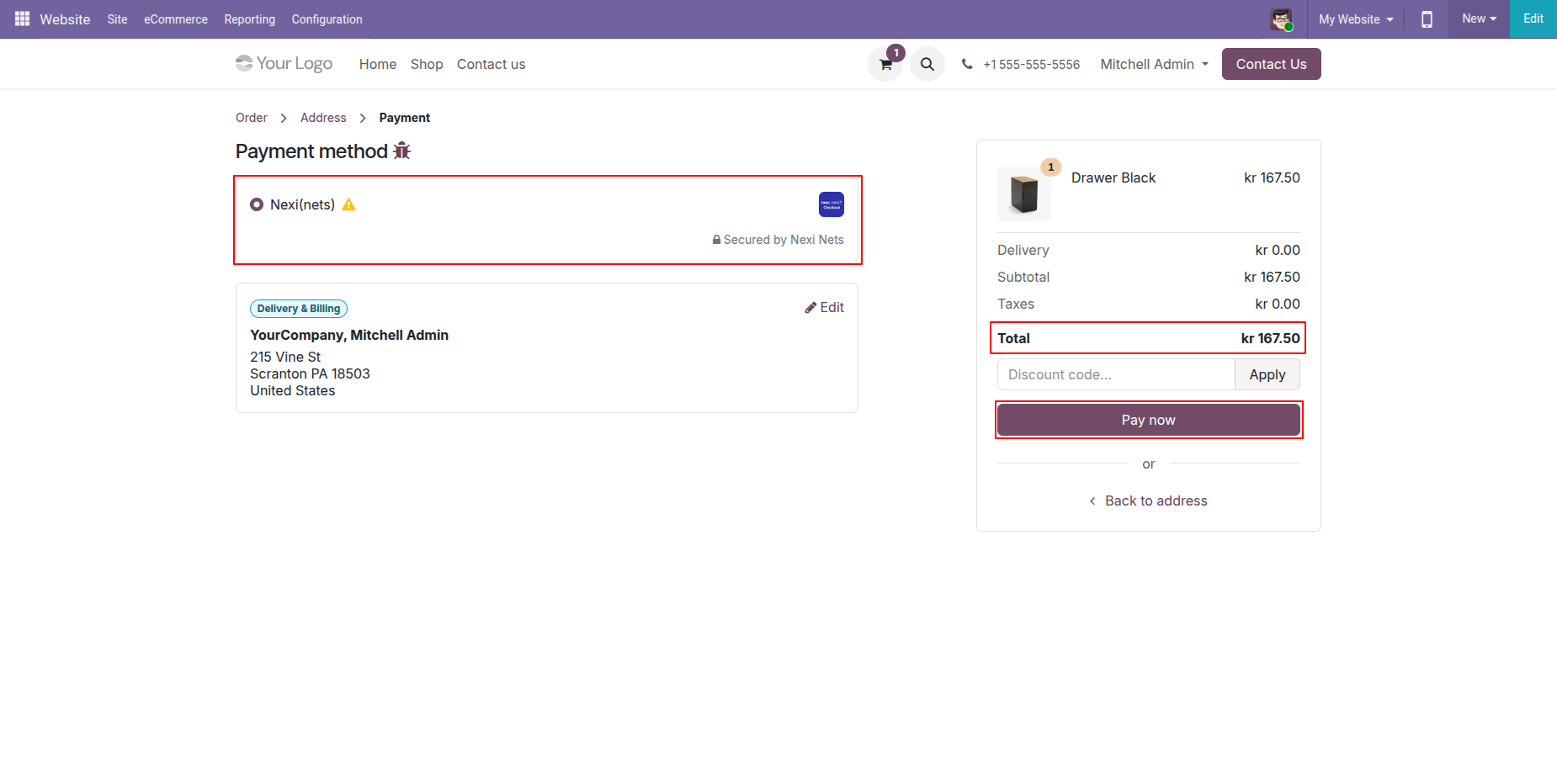 Select "Nexi(Nets)" in checkout and click "Pay Now".
