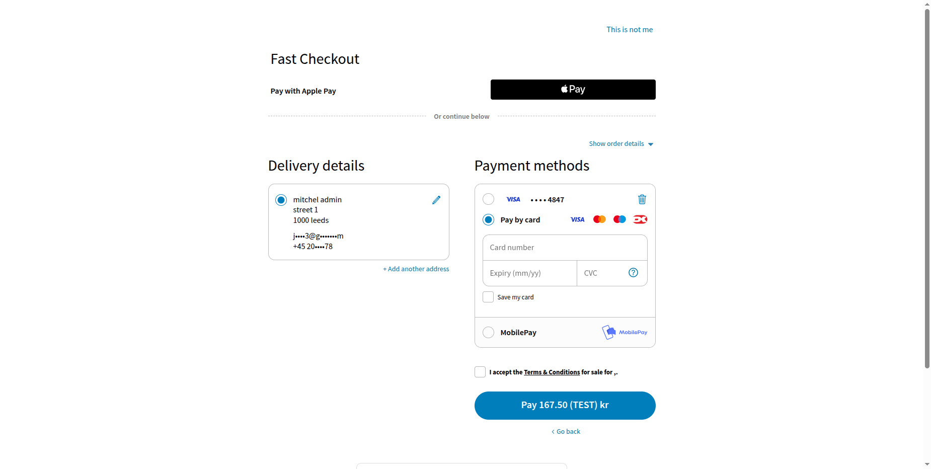 Select "Nexi(Nets)" in checkout and click "Pay".
