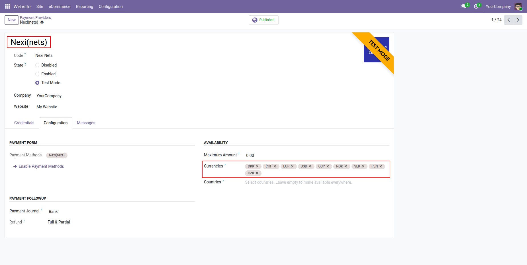 Enable Nexi(Nets) Payments across multiple Odoo websites.