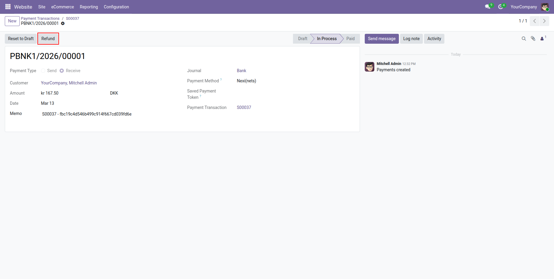 Maintain a transaction history in Odoo for all payments processed through Nexi(Nets), making payments straightforward.