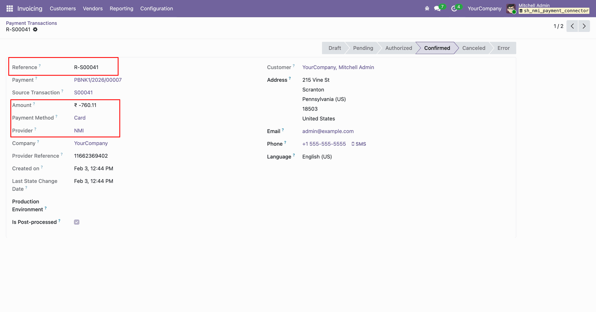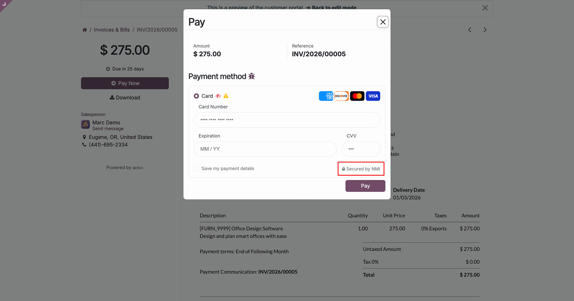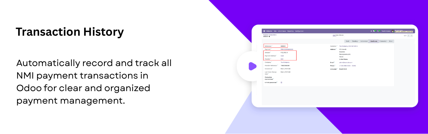 Maintain a transaction history in Odoo for all payments processed through NMI, making payments straightforward.
