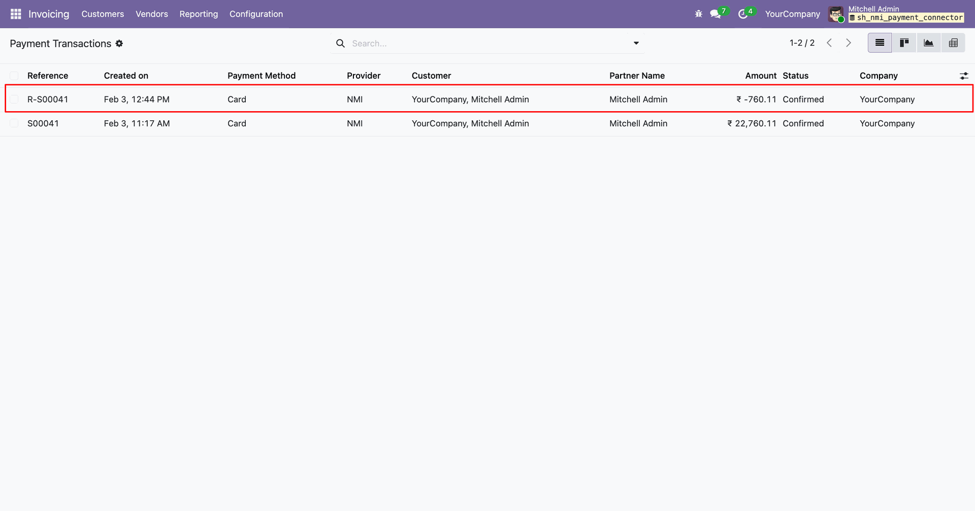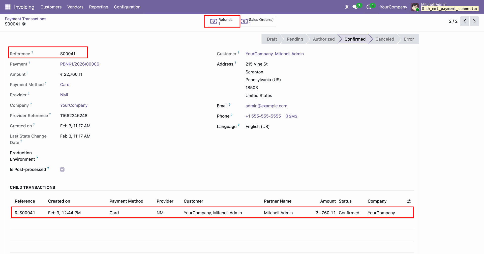 Process refunds directly from Odoo for any order paid through NMI. Ensuring smooth handling of cancellations.