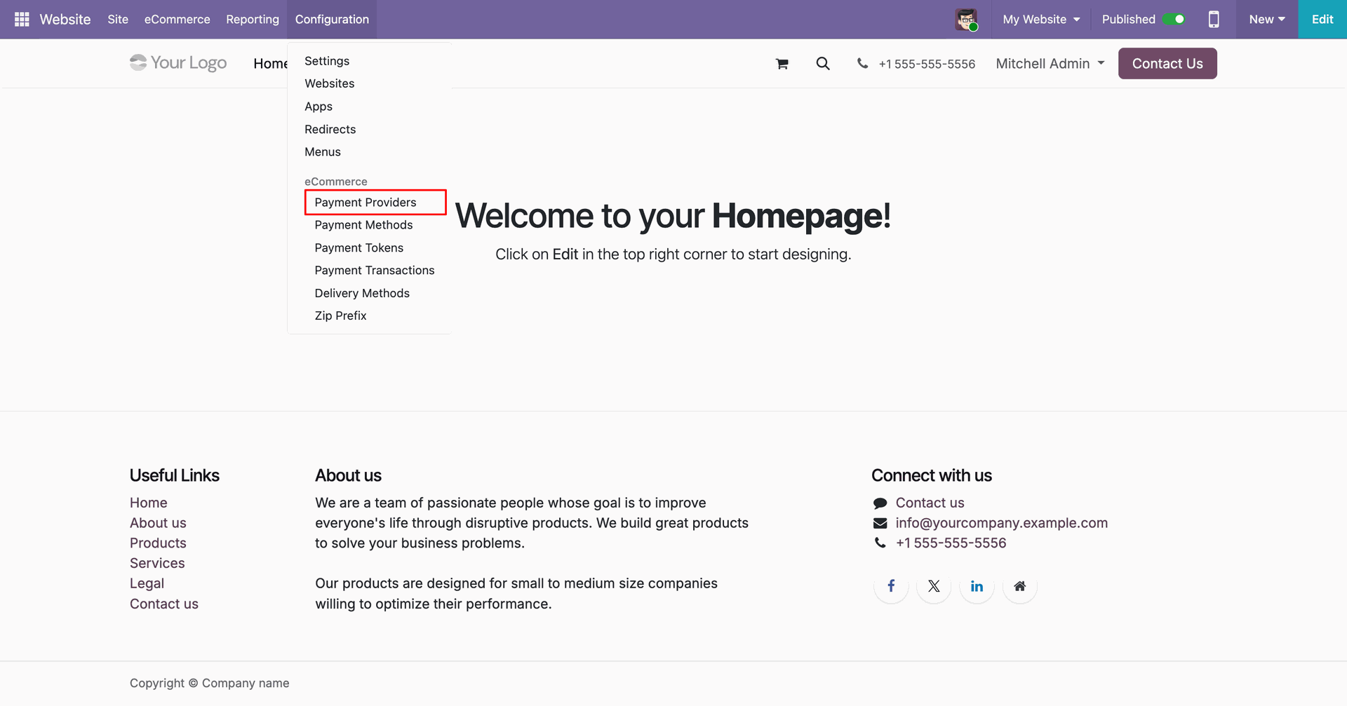 Go to Website -> Configuration -> Payment Providers to access NMI settings.
