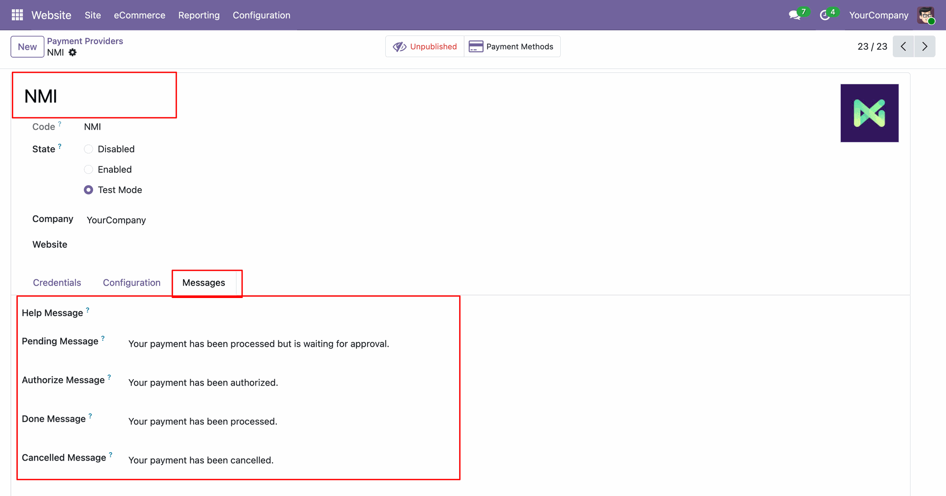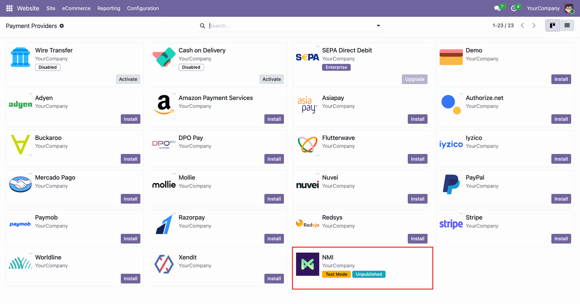 Enable NMI Payments across multiple Odoo websites.