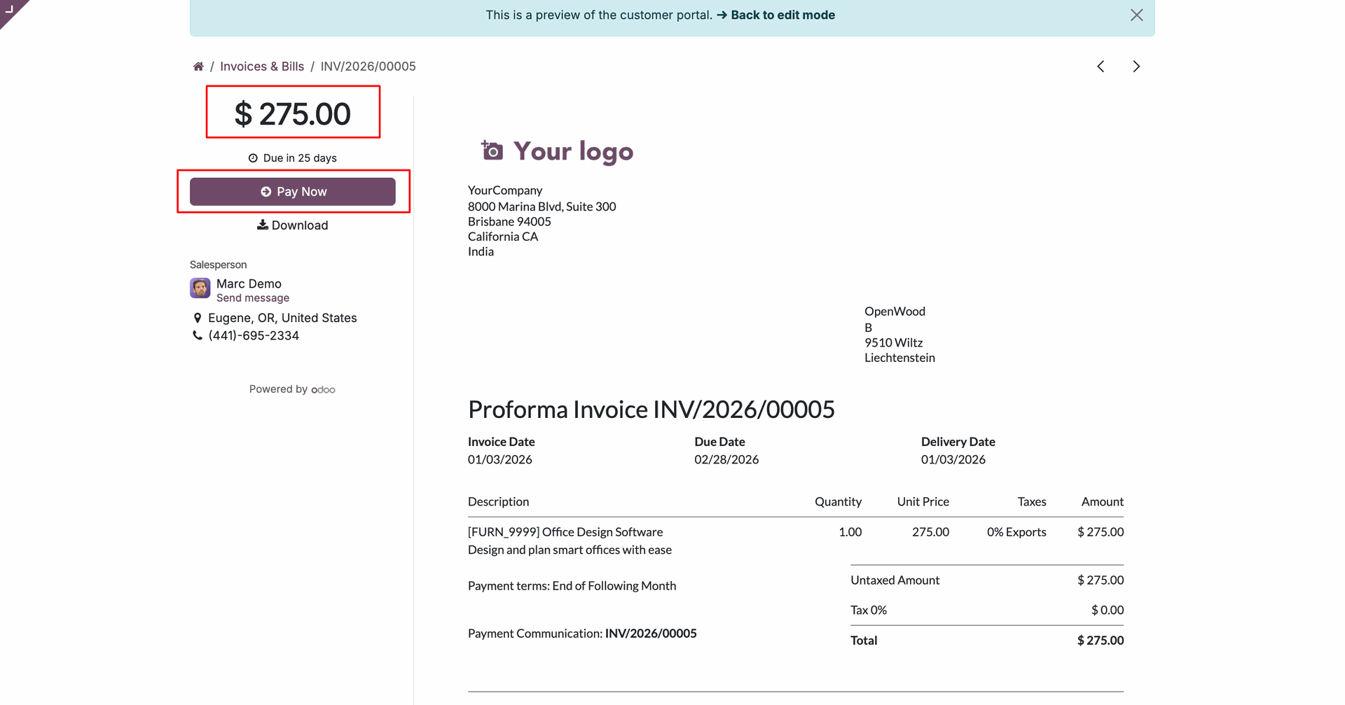 Click the Pay Now button at the portal for portal payment.