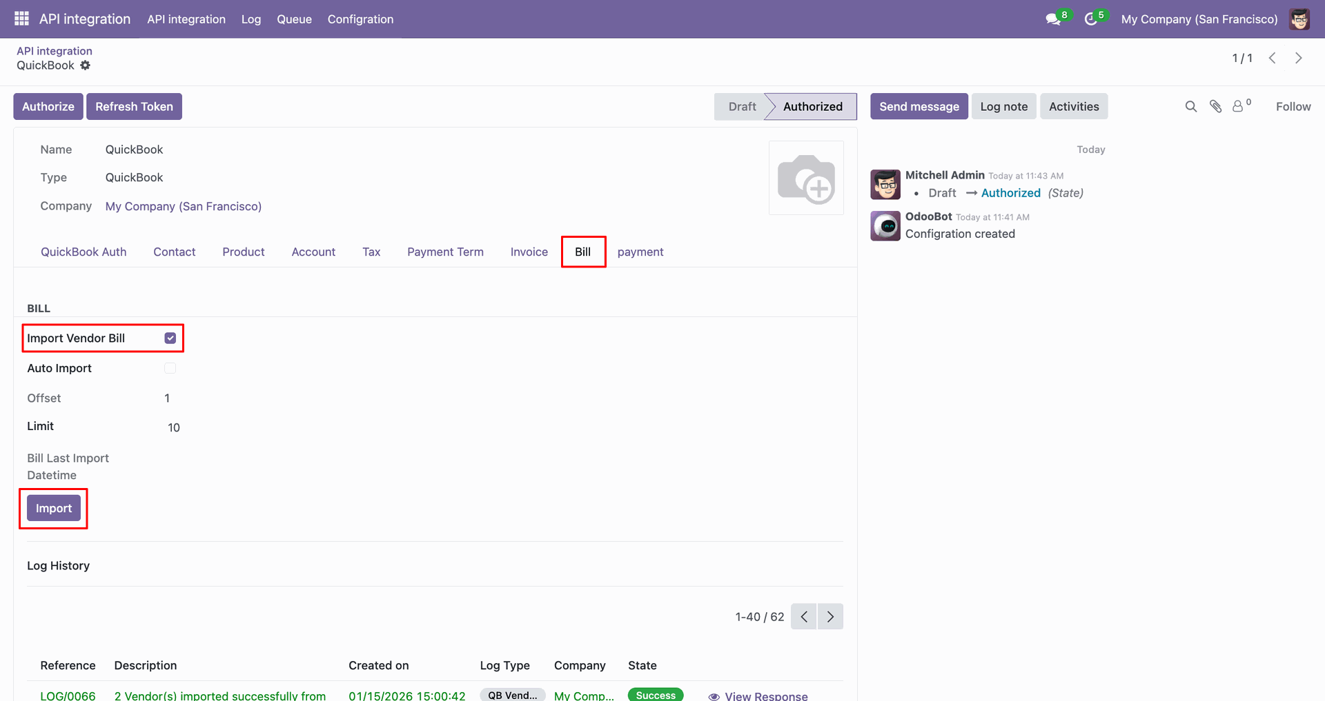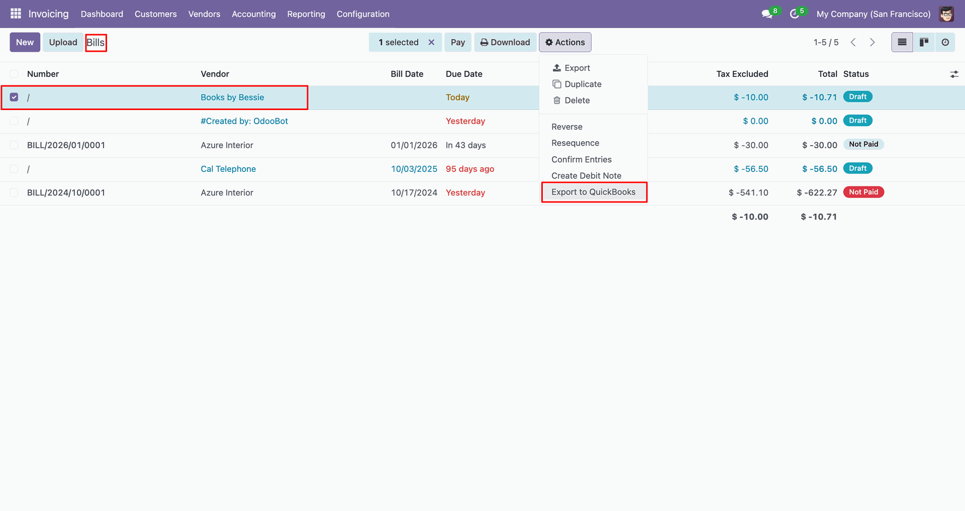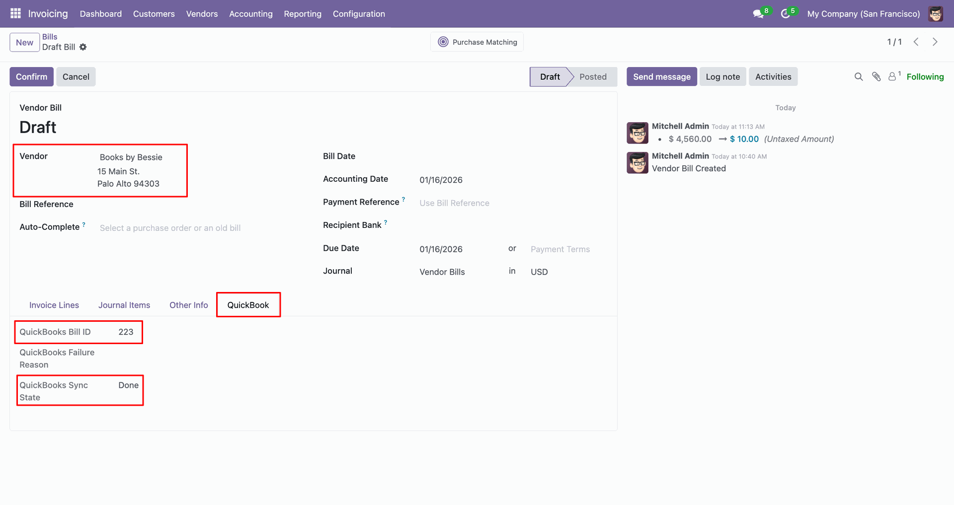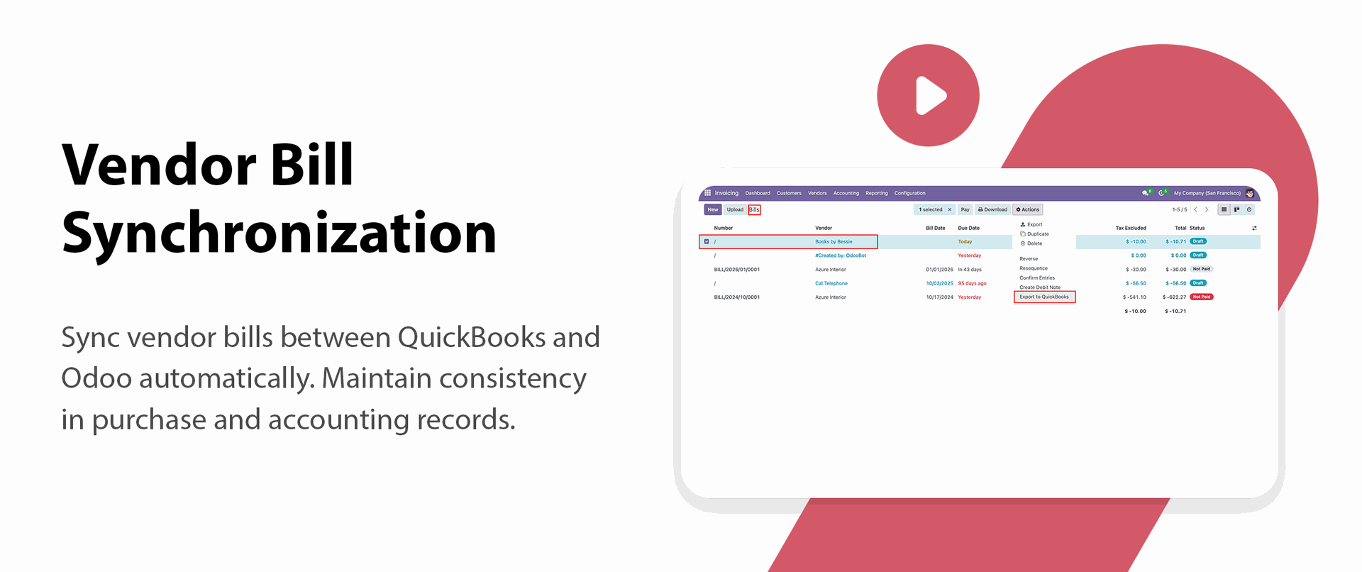 Sync vendor bills between Odoo and QuickBooks for efficient payable management.