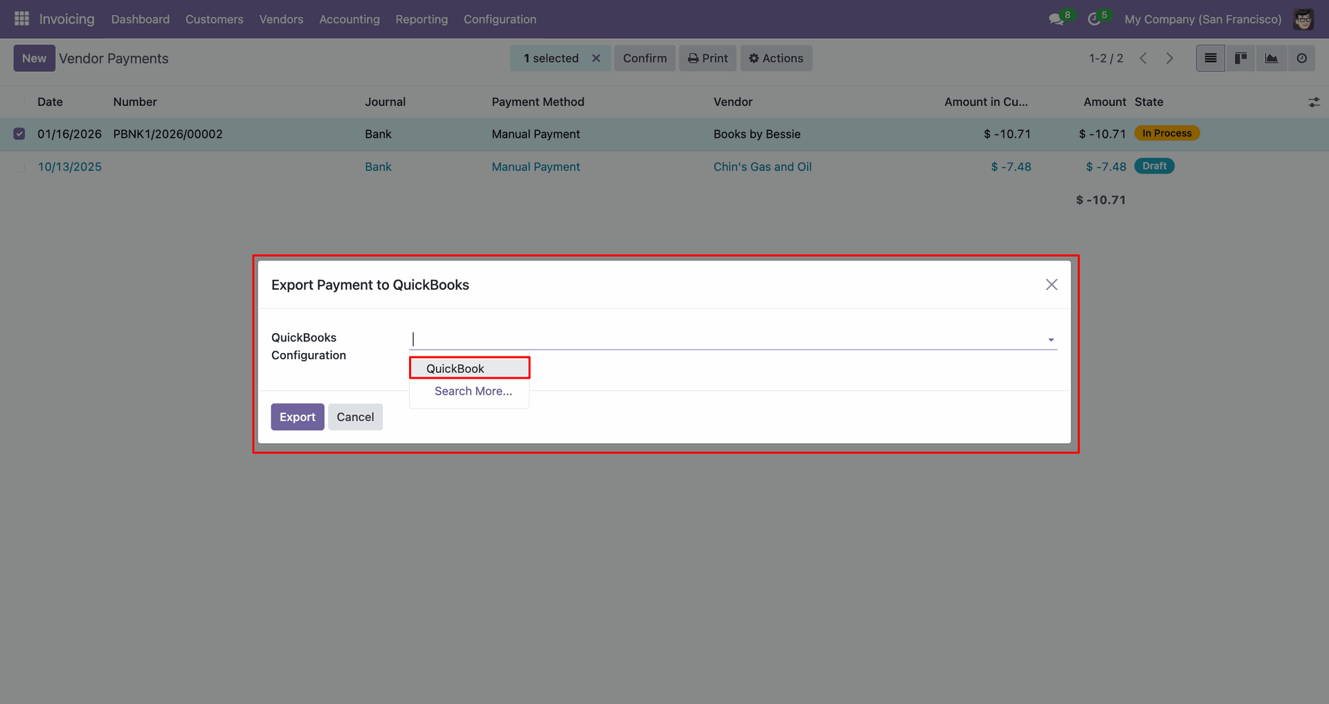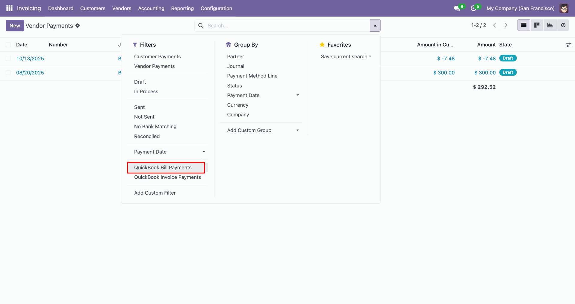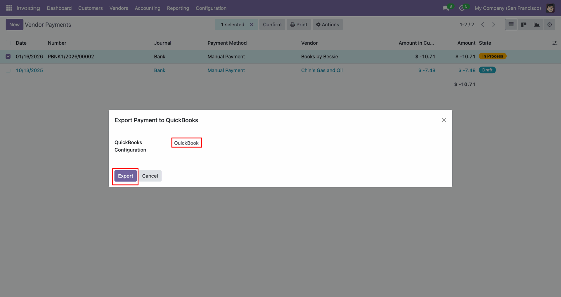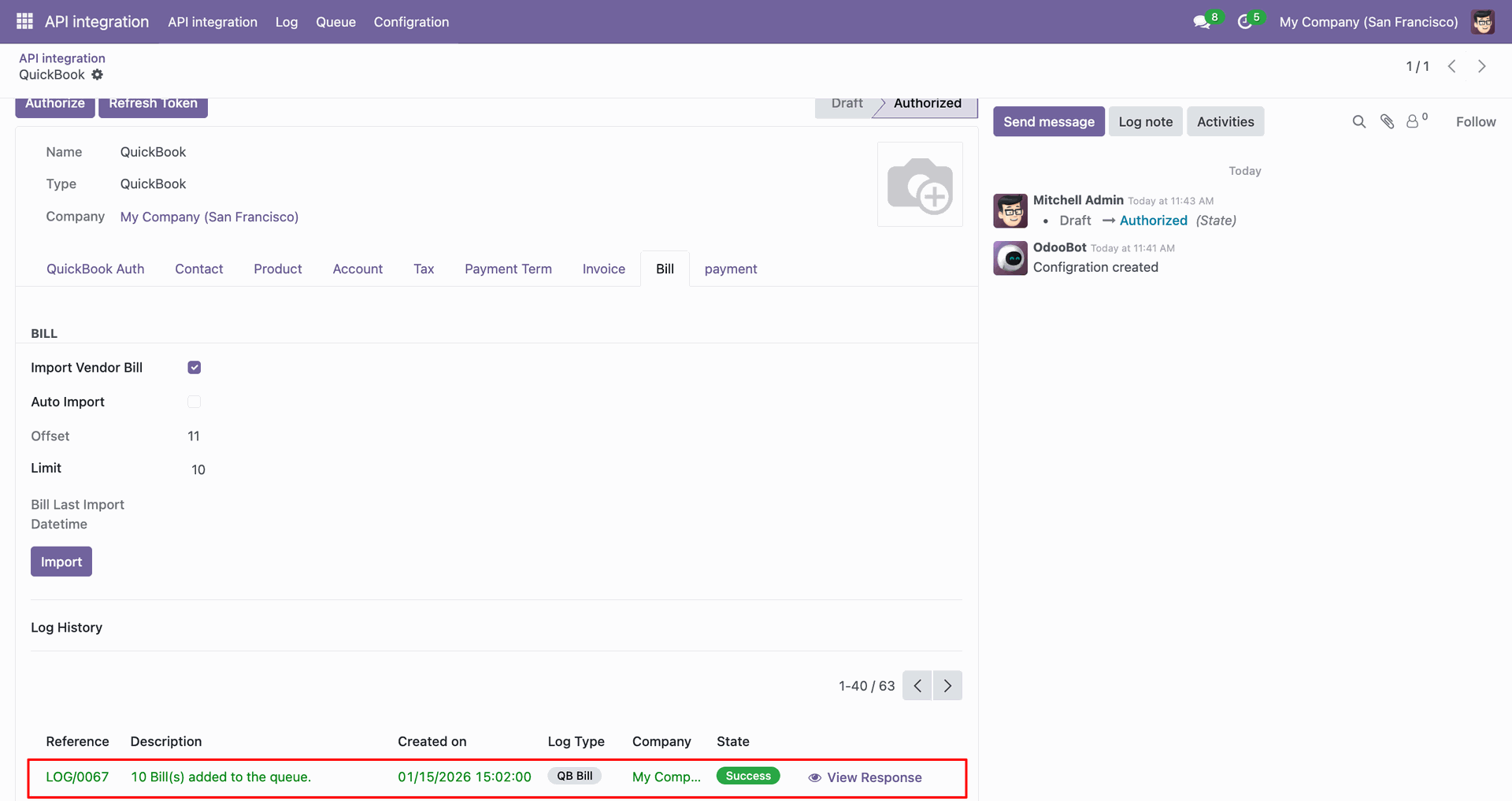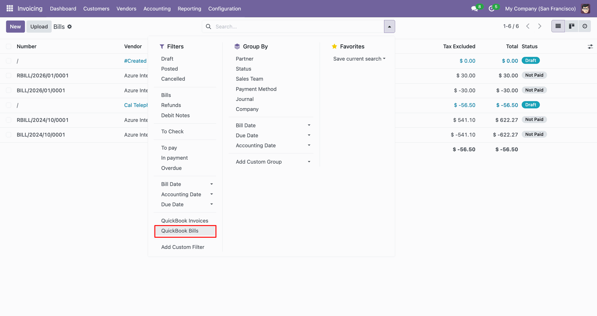 Sync vendor bills between Odoo and QuickBooks for efficient payable management.