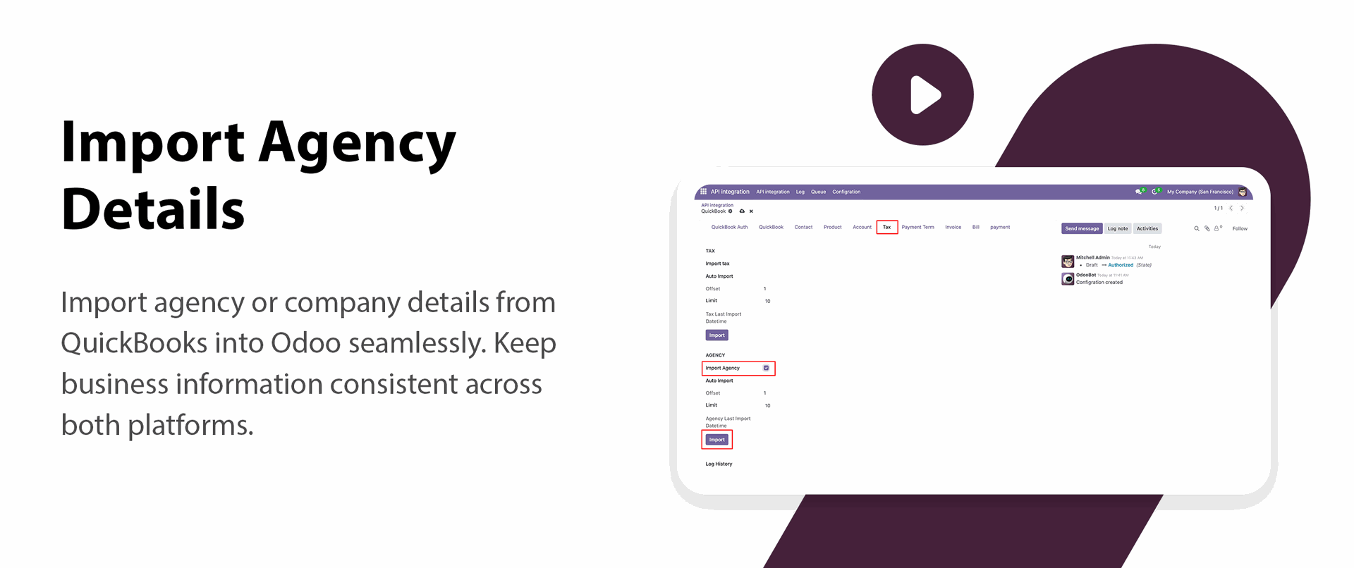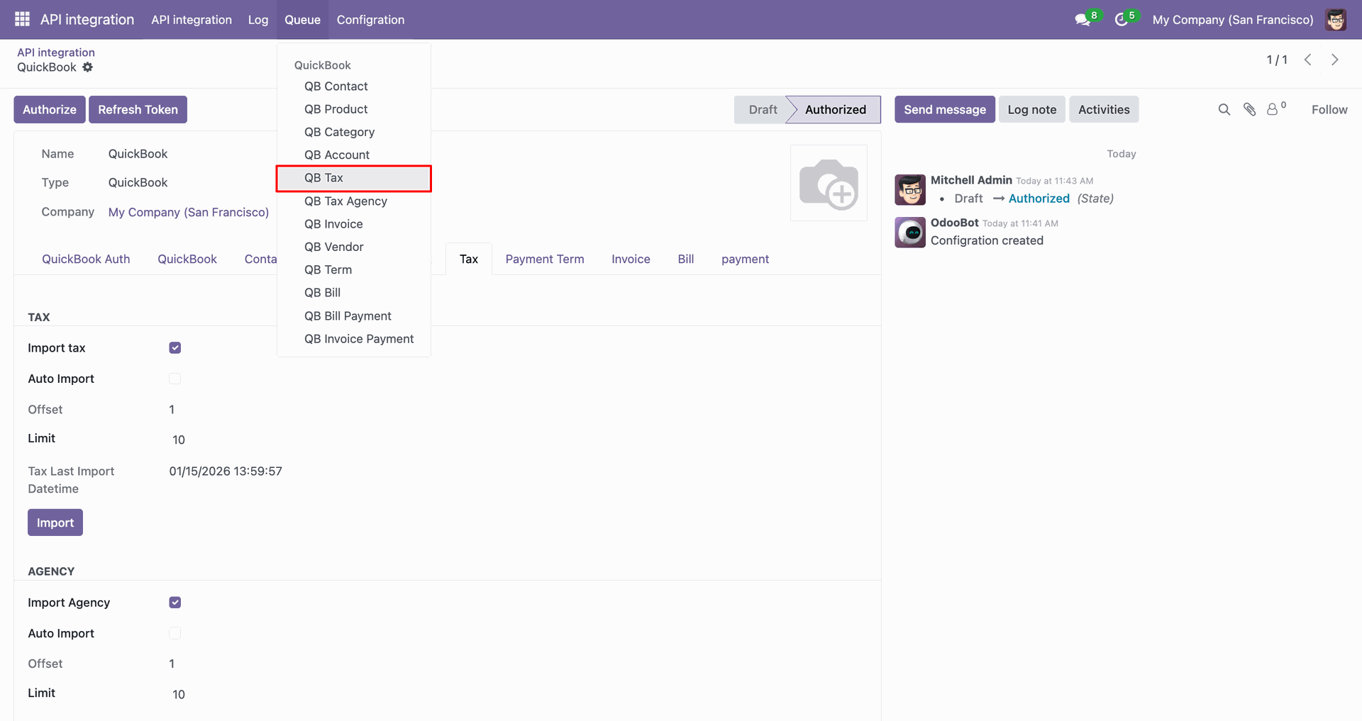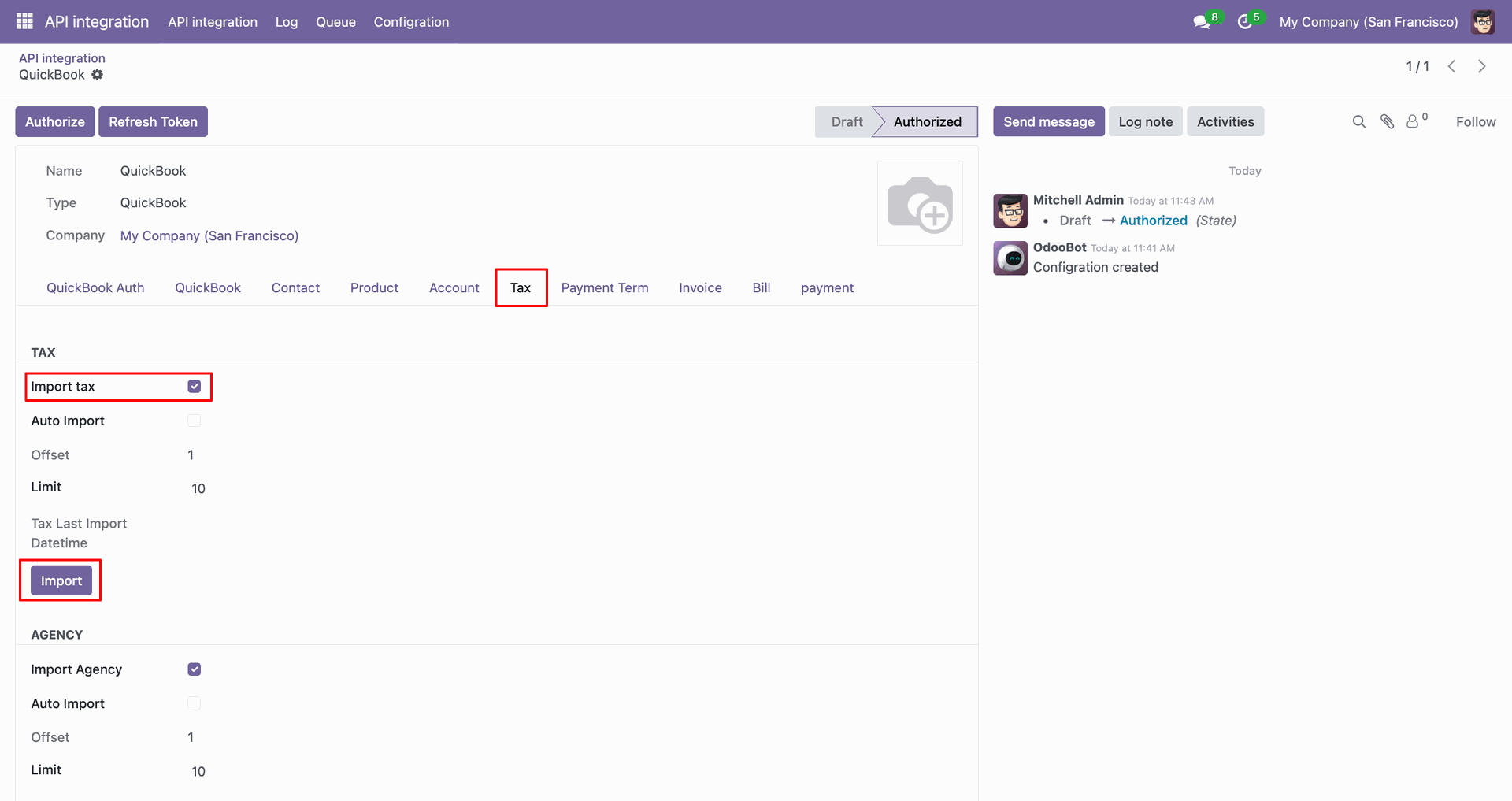 Easily import tax agency from QuickBooks into Odoo to maintain accurate business records.