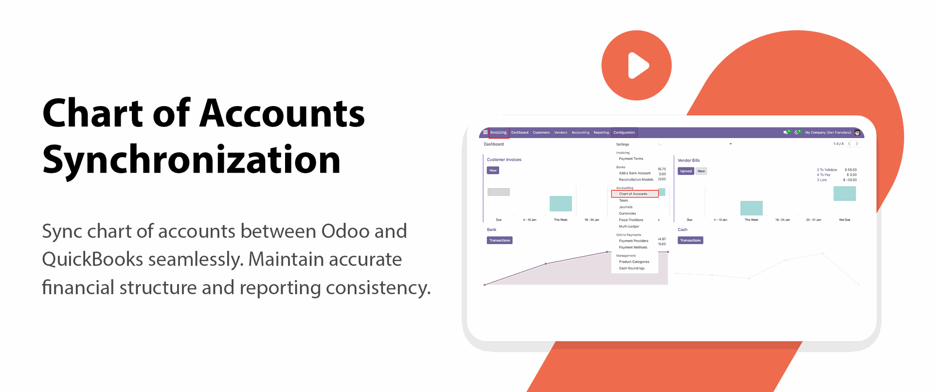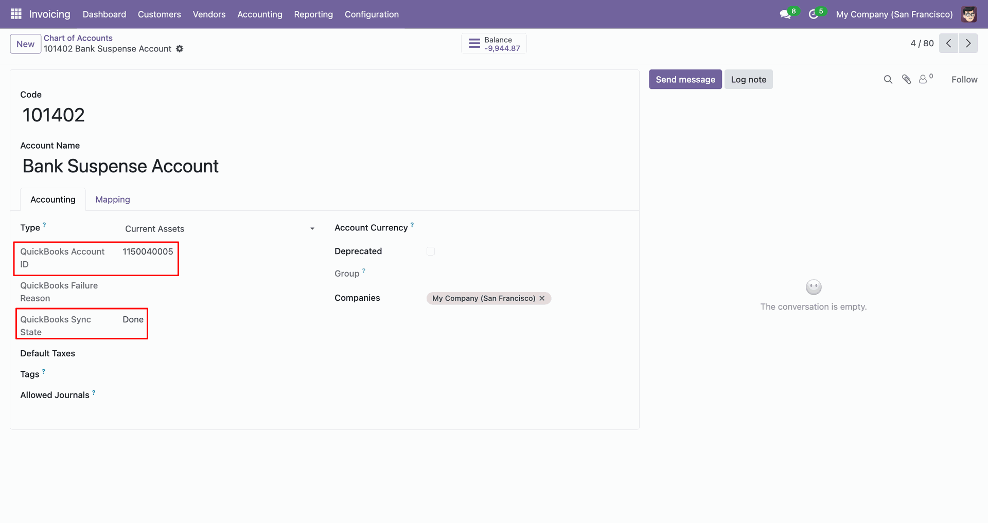 Sync accounts between Odoo and QuickBooks to maintain proper financial mapping.