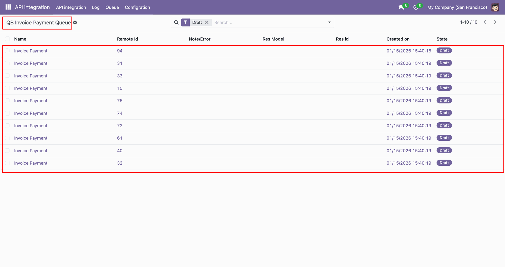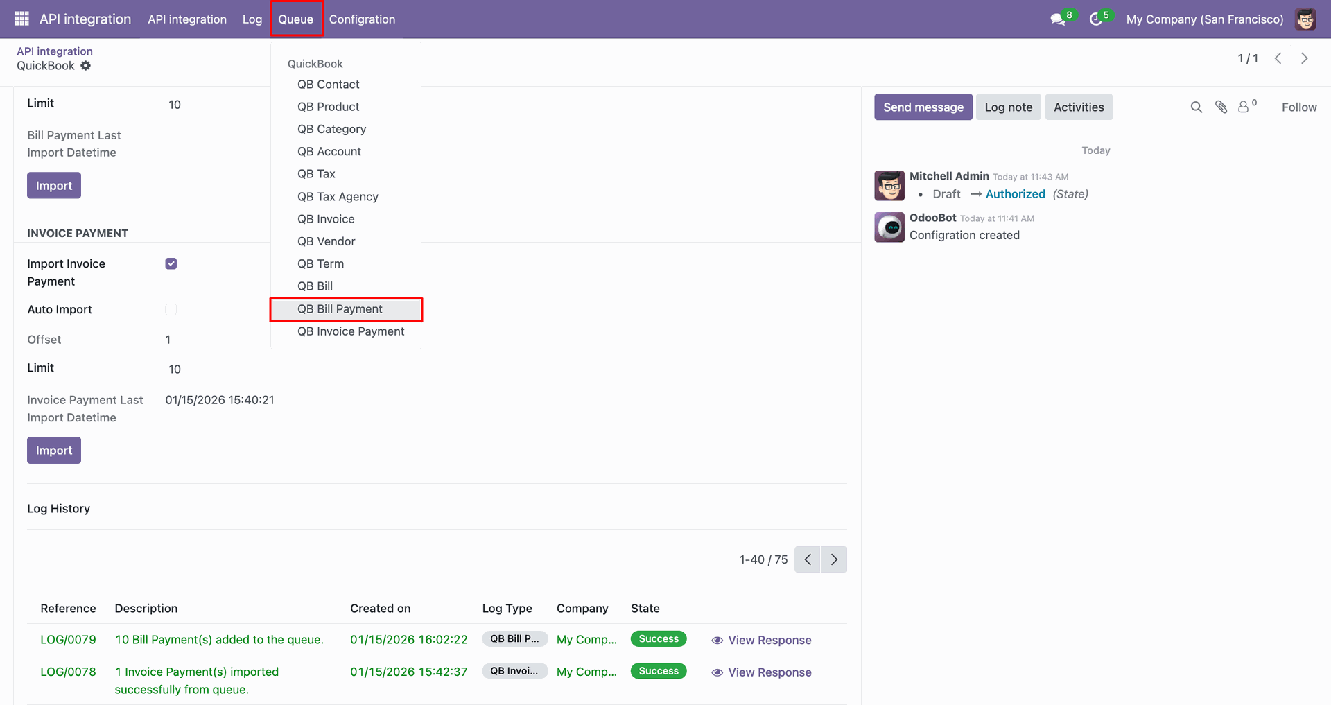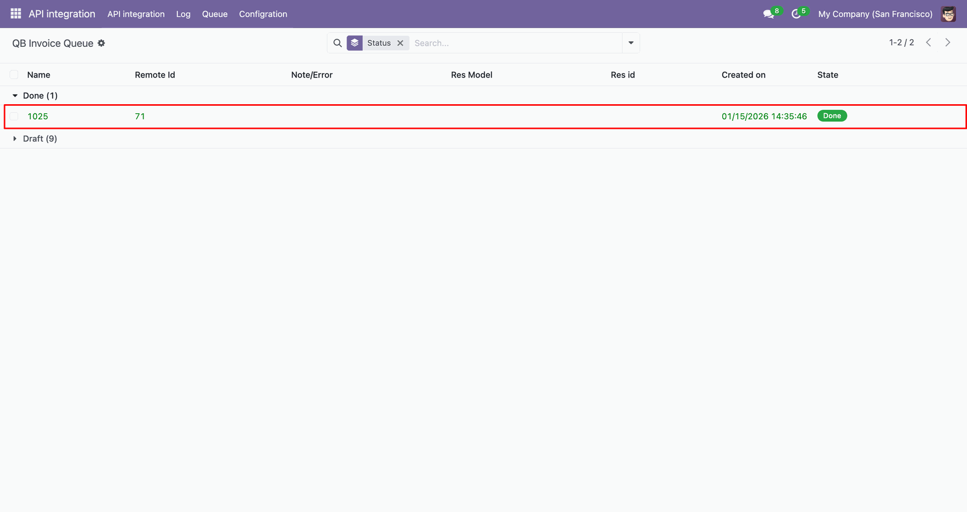 Go to the Queue, 'QB Invoice Payment'.