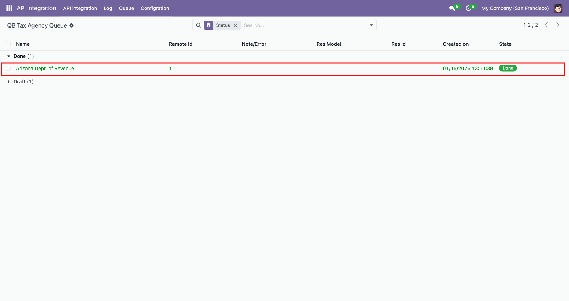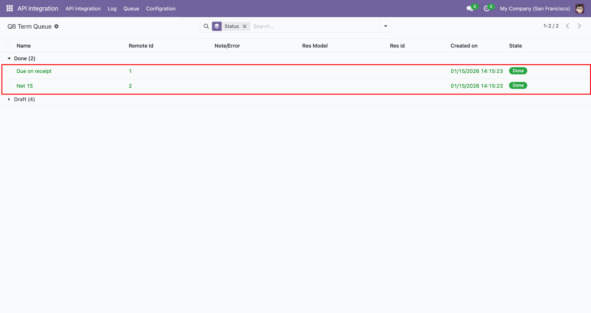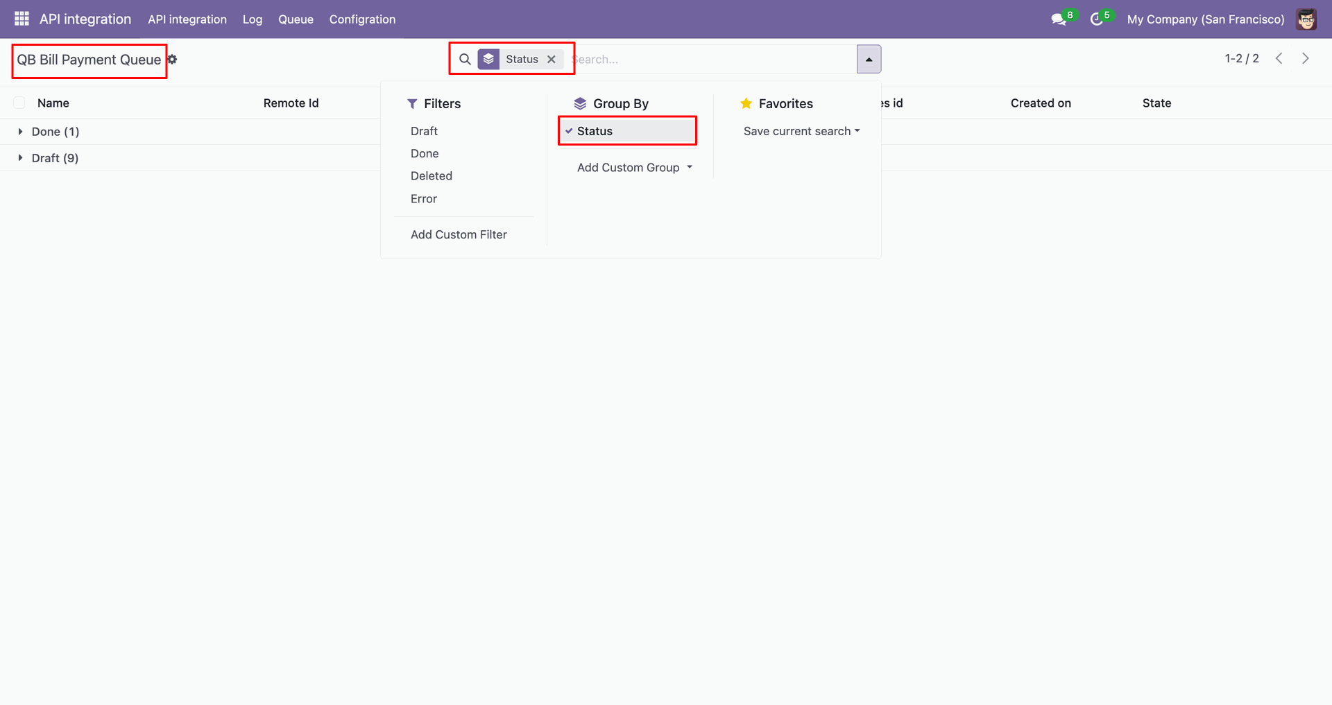 Go to the Queue, 'QB Invoice Payment'.