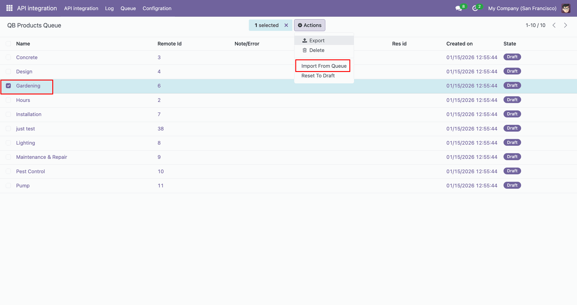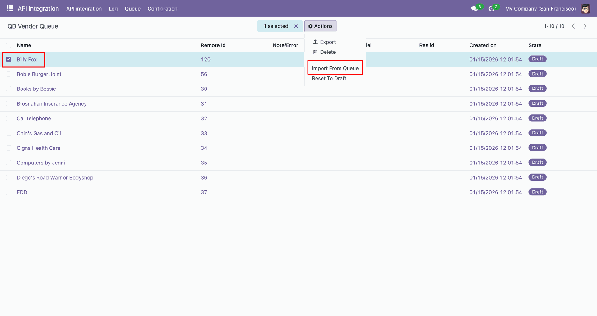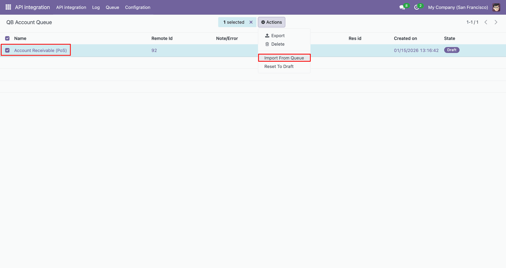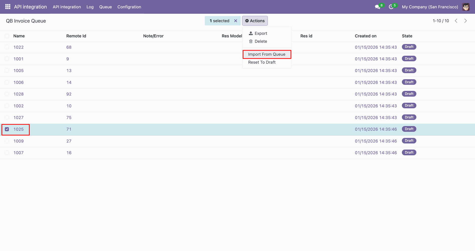 Go to the Queue, 'QB Invoice'.